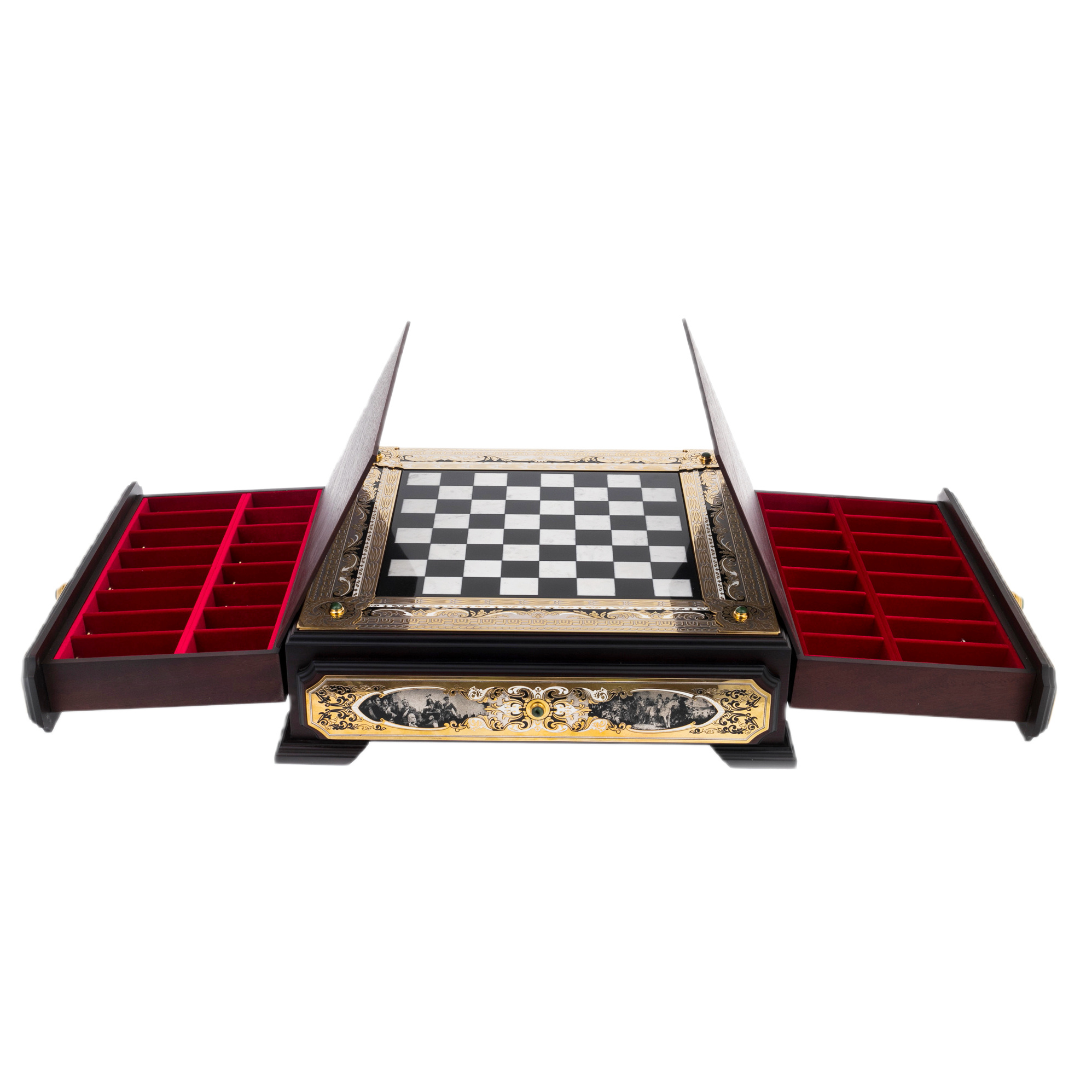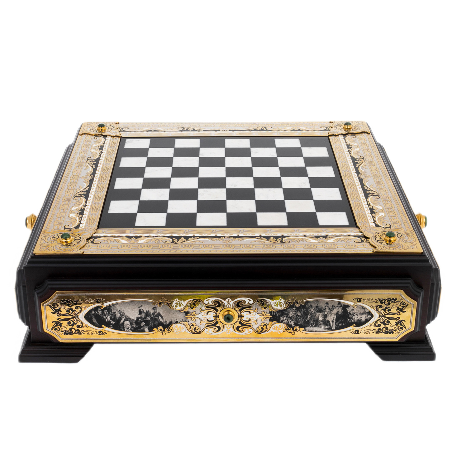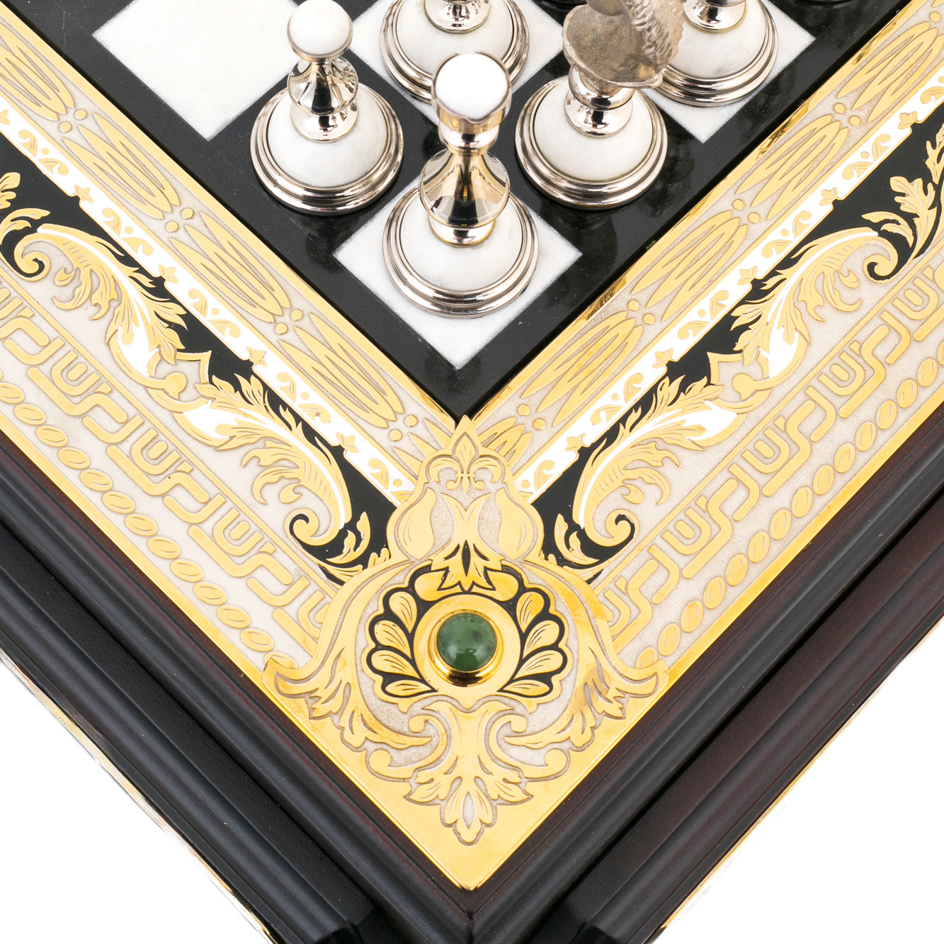 Шахматы из мрамора, нефрита "Баталия" с позолотой, Златоуст