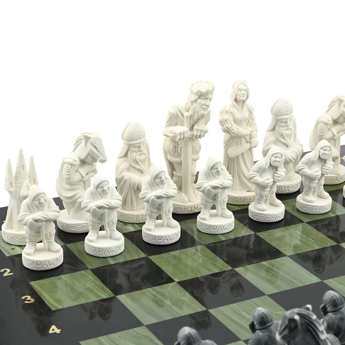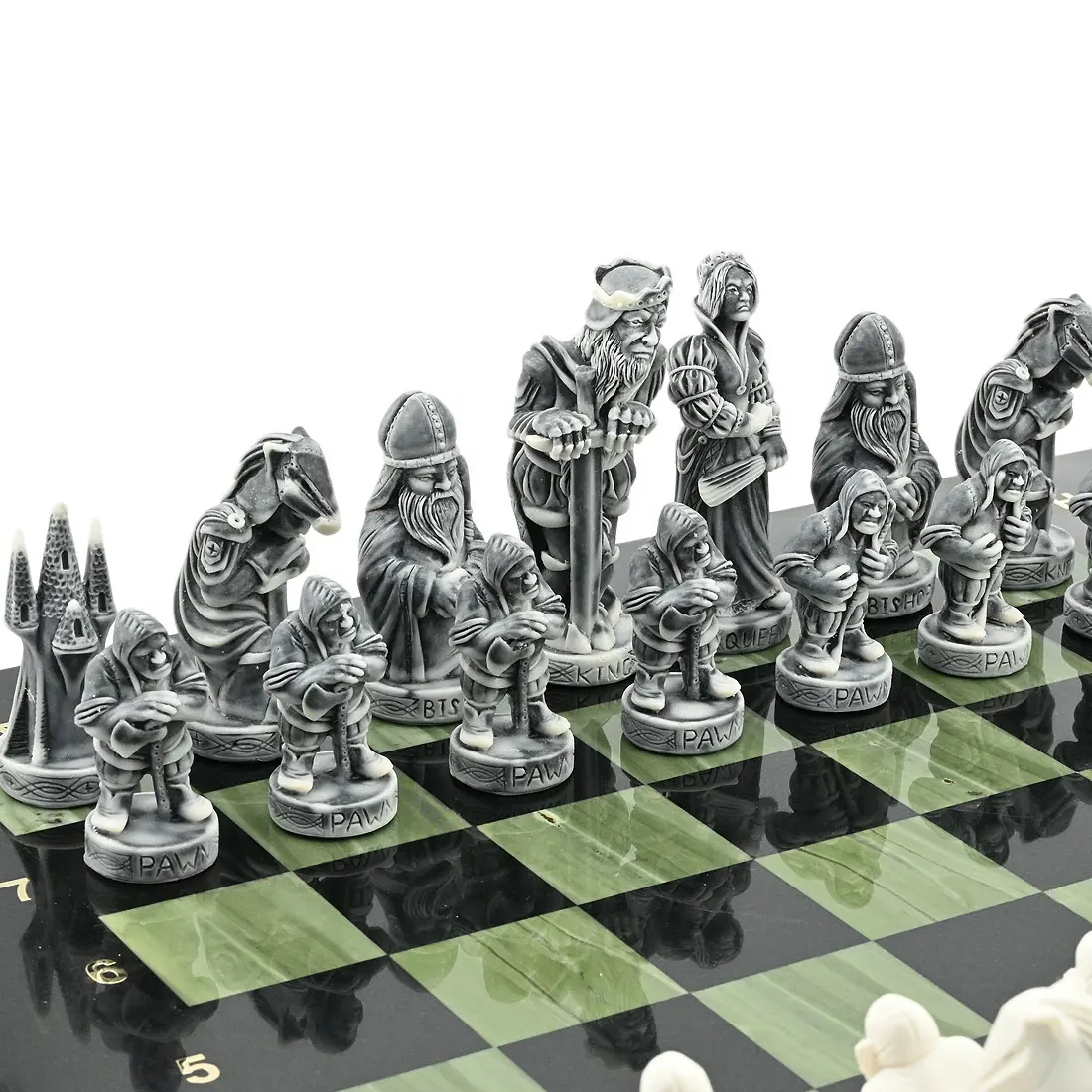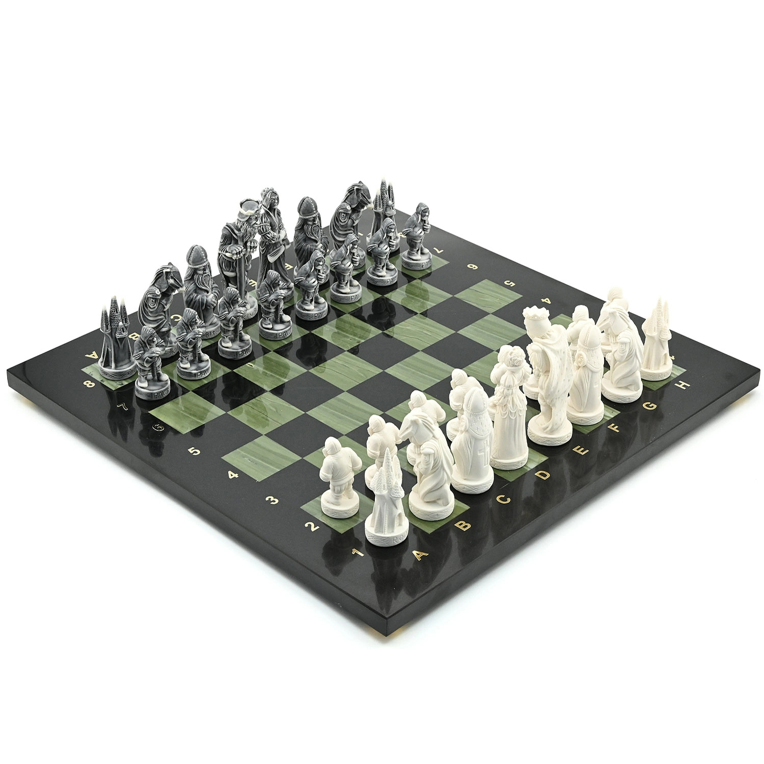 Шахматы из офиокальцита и долерита "Средневековье" с фигурами из мрамолита