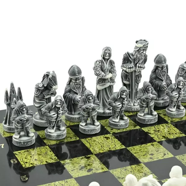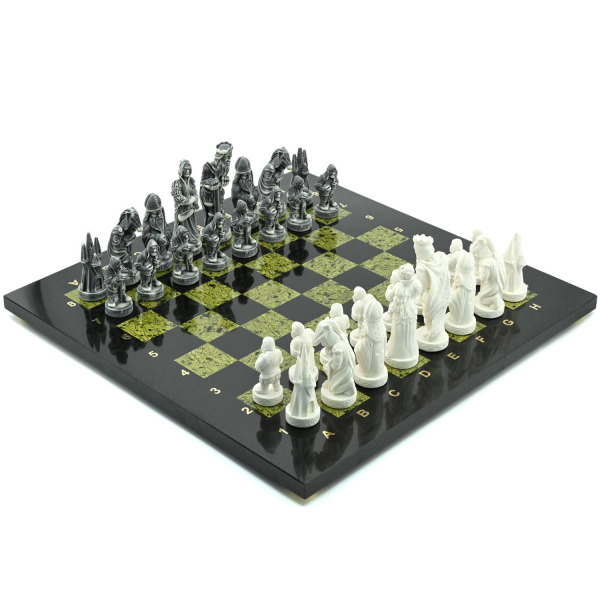Шахматы из змеевика и долерита "Средневековье" с фигурами из мрамолита