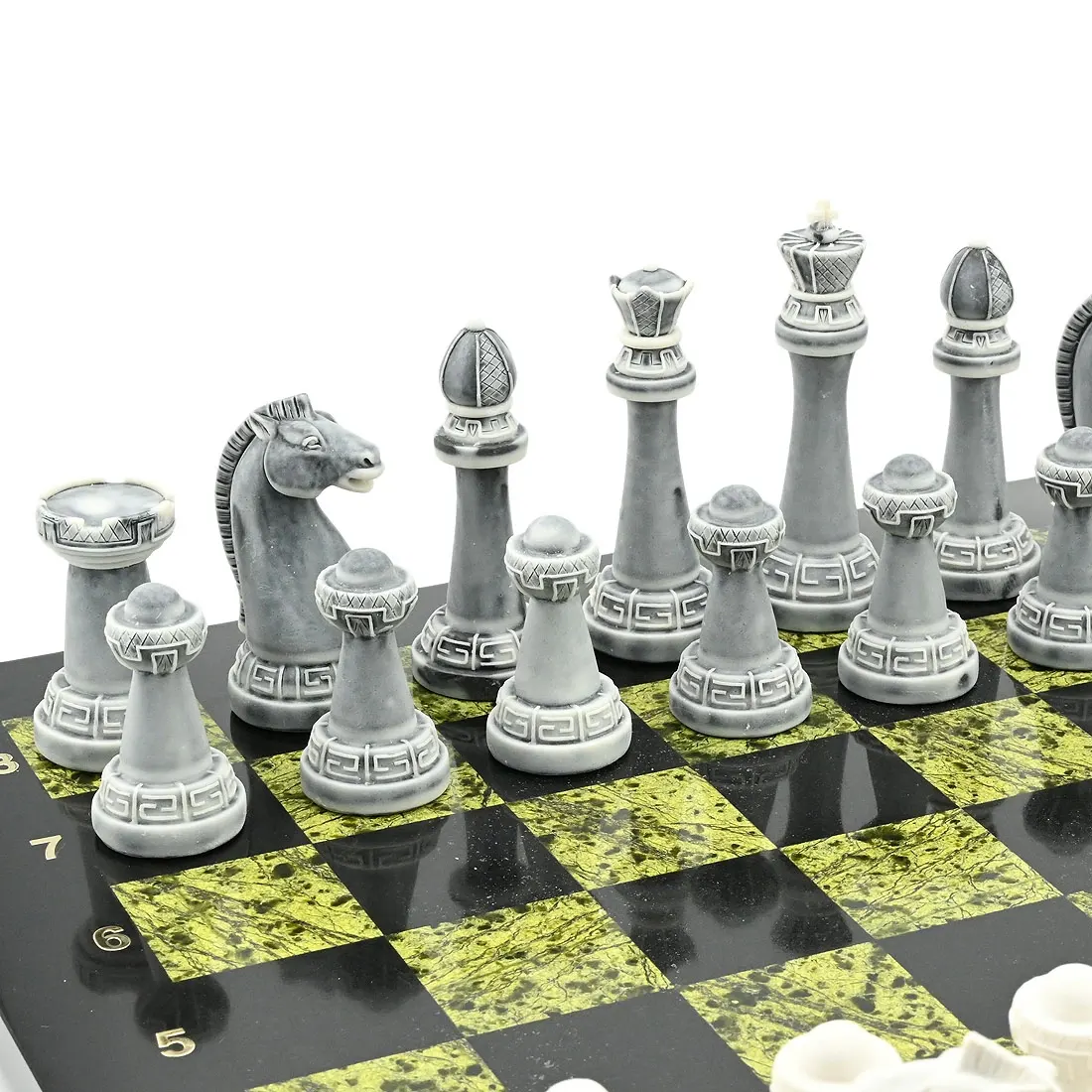 Шахматы из змеевика и долерита "Стаунтон" с фигурами из мрамолита