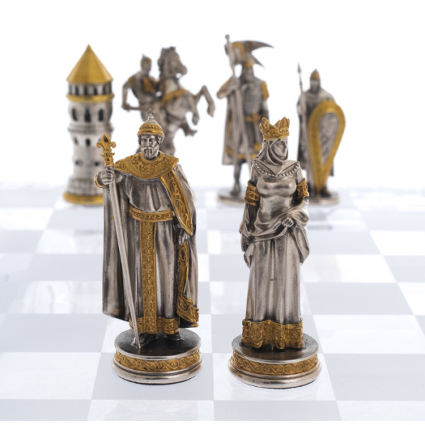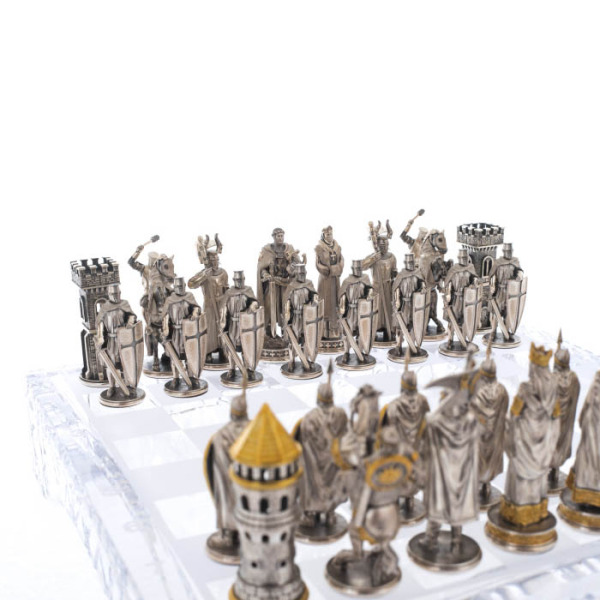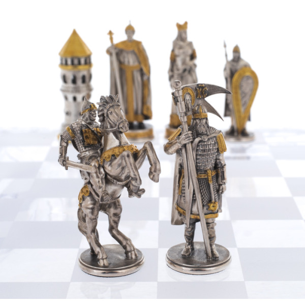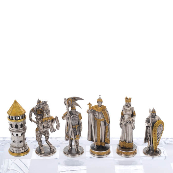 Главные герои комплекта — Русичи и Крестоносцы. Это тема из исторического фильма Сергея Эйзенштейна "Александр Невский". Образы русских воинов, предводителей Новгородской республики и Владимиро-Суздальского княжества под началом князей Александра Невского и Андрея Ярославича, выполнены в торжественном стиле. Их доспехи и одеяния, возможно, и не точны с исторической точки зрения, однако передают парадное величие своих прототипов. С другой стороны шахматной доски расположены Ливонские рыцари под предводительством Андреса фон Вельвена. В этих фигурах чувствуются суровость и холод рыцарских доспехов.