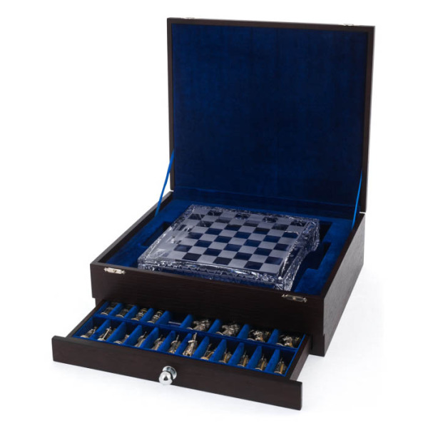 Шахматная доска изготовлена из хрусталя, что придает комплекту неповторимую изысканность и величественность. Прозрачная структура хрусталя символизирует чистоту и утонченность, создавая игру света, которая подчеркивает каждую деталь фигур. Этот набор станет не просто украшением интерьера, а воплощением силы, решительности и власти. Поставляется в фирменном подарочном футляре, что делает его идеальным выбором для тех, кто ценит элитарность и статус.
