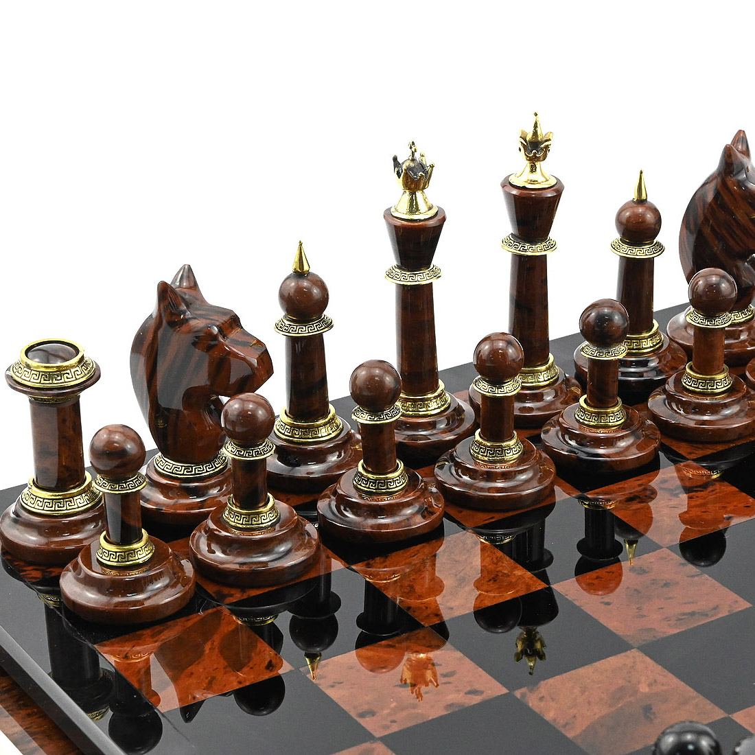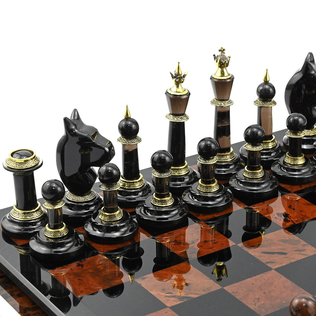 Шахматы подарочные "Империя" из обсидиана и бронзы