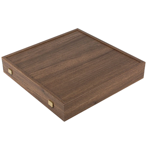 Доска опирается на изящные ножки, стилизованные под античные капители, подчеркивая преемственность от классики к Ренессансу. Эмалированные клетки переливаются глянцем, создавая впечатление инкрустированной поверхности. Все элементы набора бережно уложены в ларец, изготовленный с внутренними креплениями и мягкой бархатной обивкой. Даже в закрытом виде этот футляр выглядит как реликварий, скрывающий внутри бесценную интеллектуальную реликвию.