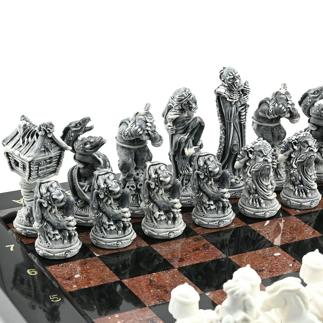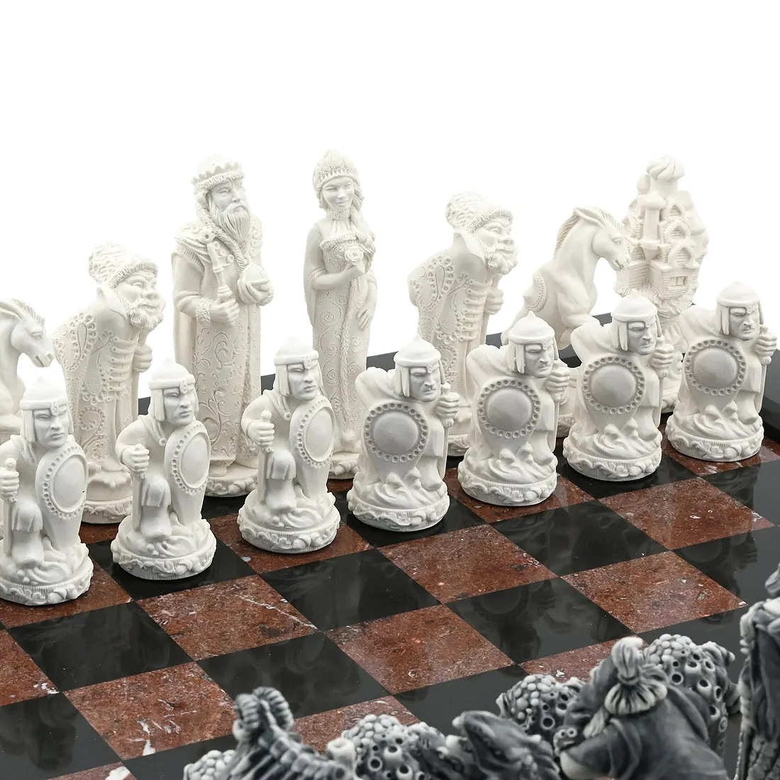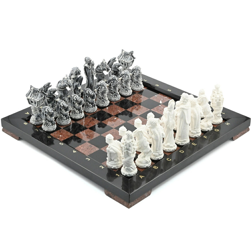 Шахматы подарочные "Русские сказки" с фигурами из мрамолита