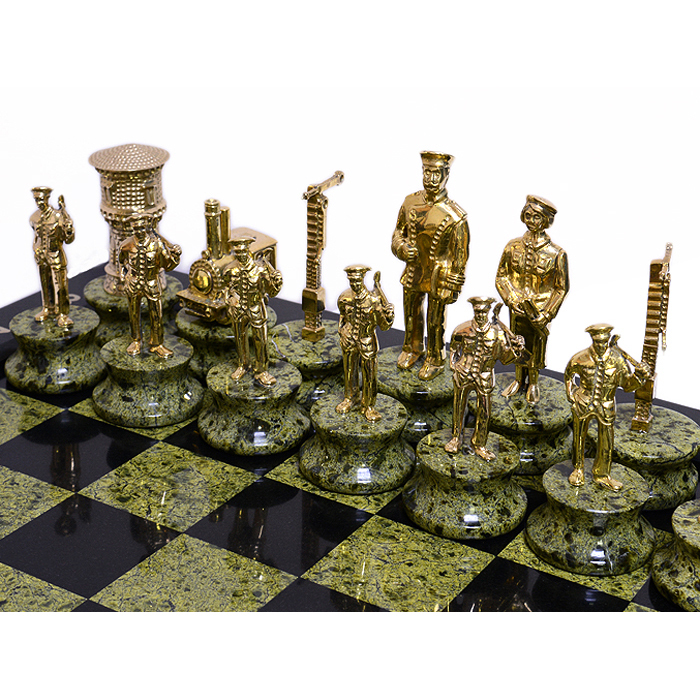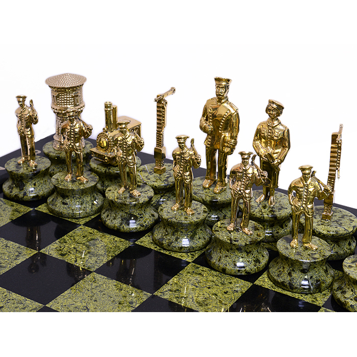 Шахматы "Железная дорога" большие из змеевика и долерита