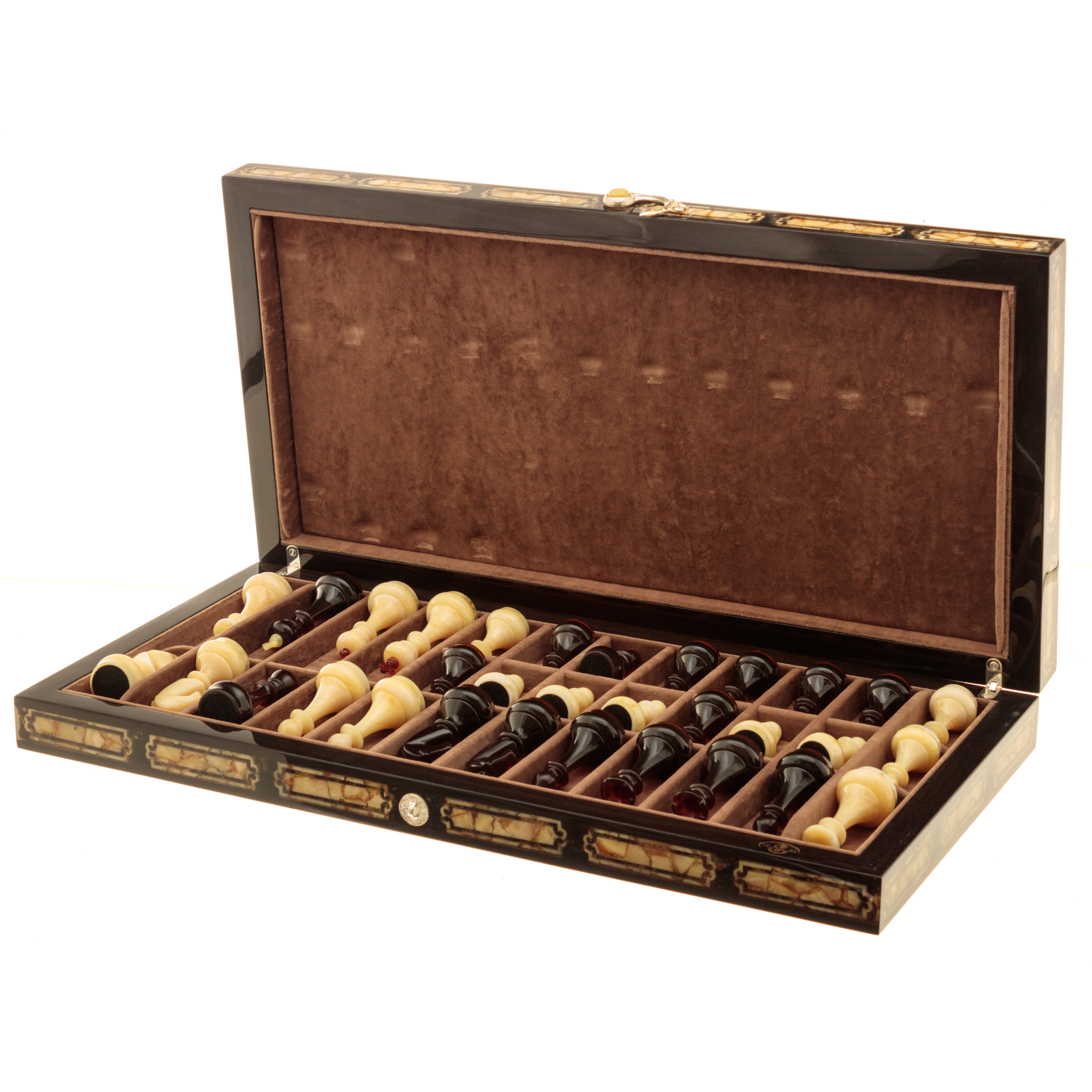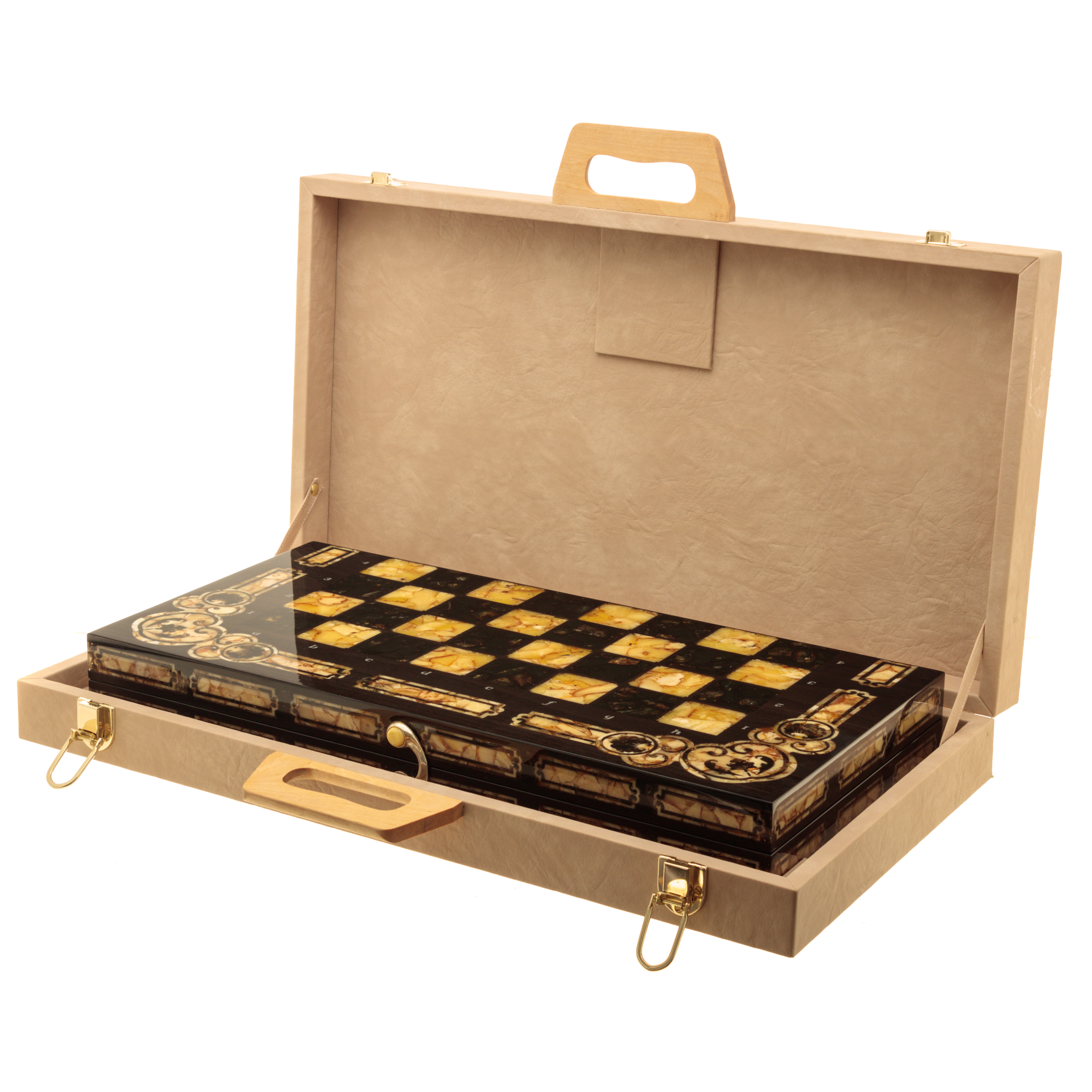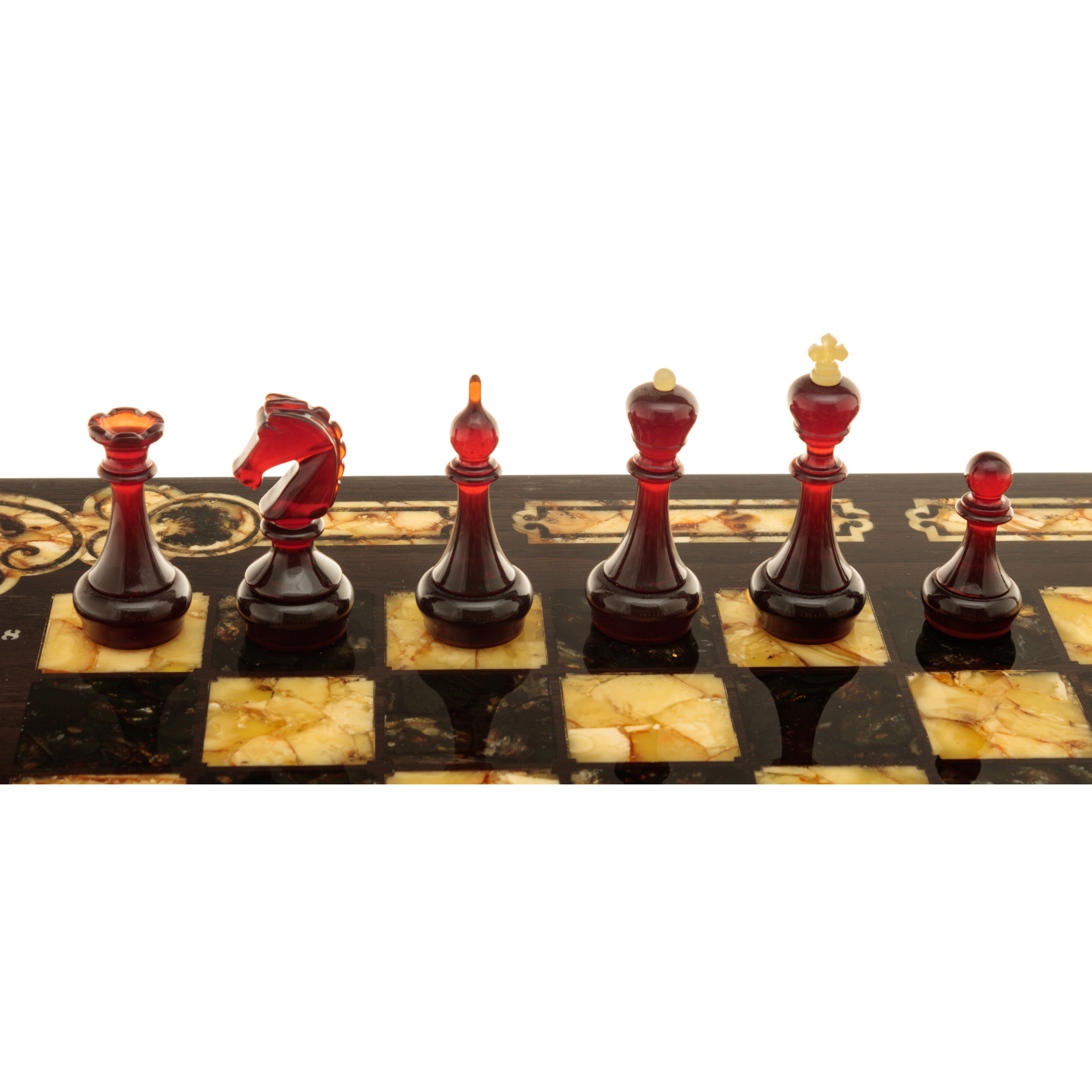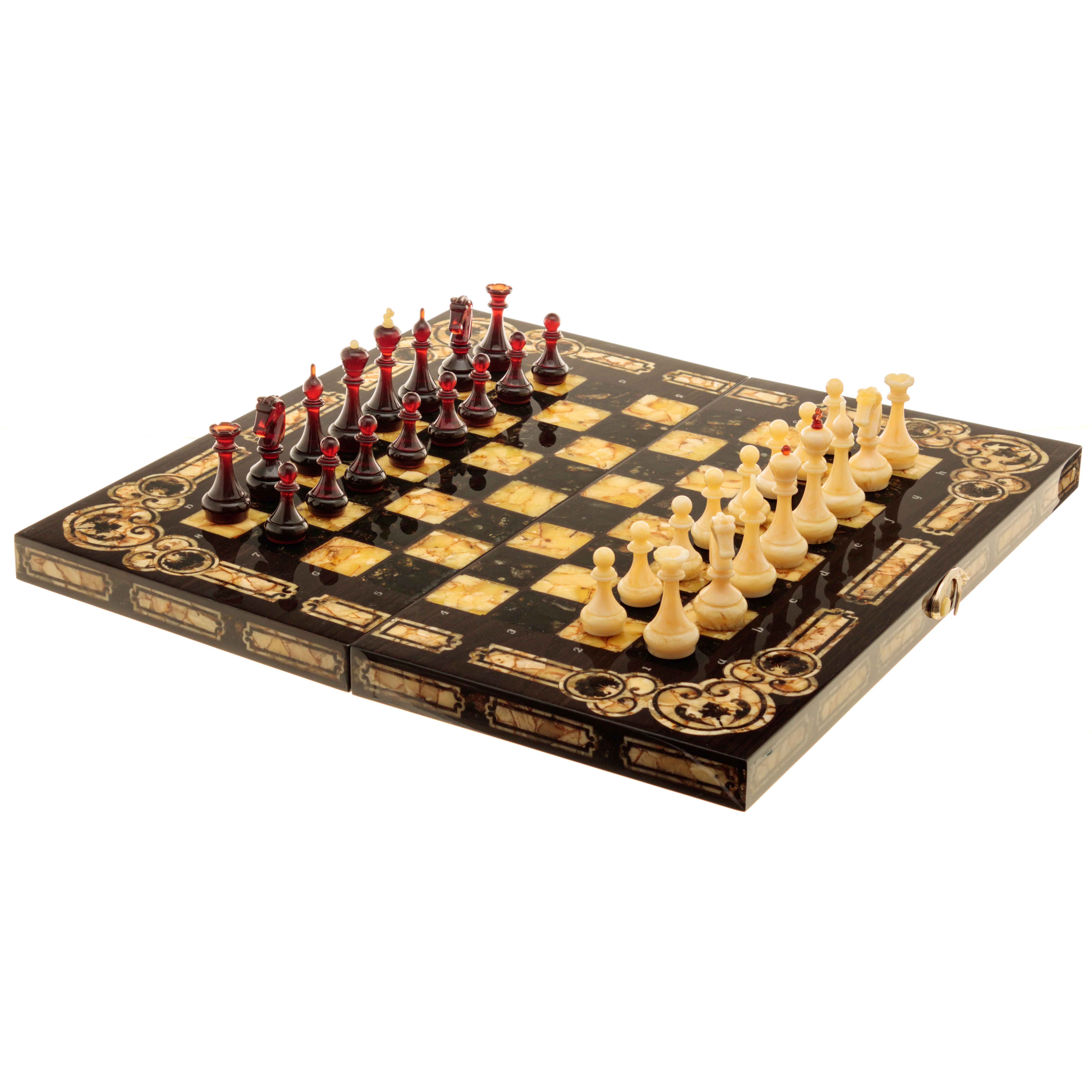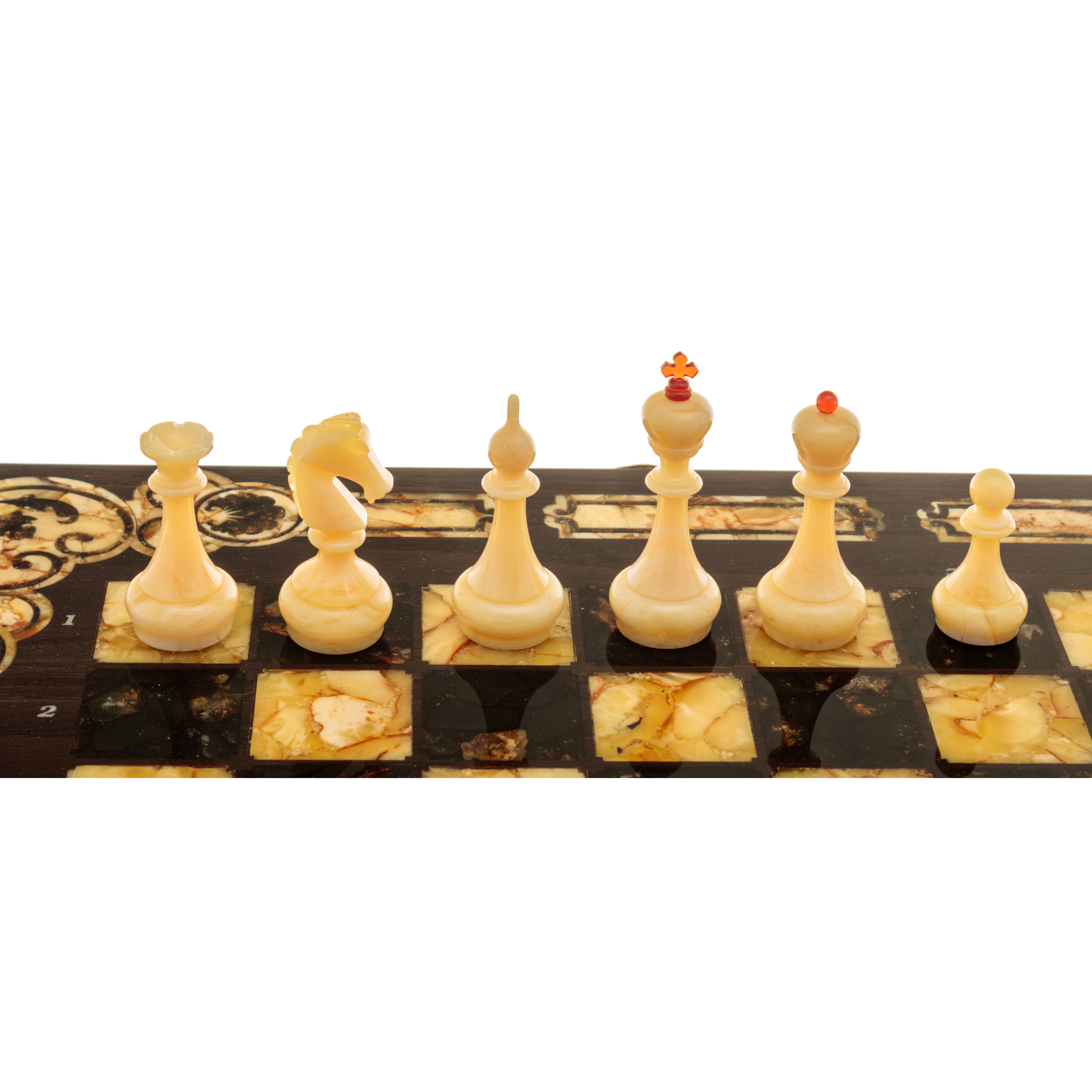 Шахматы из мореного дуба и янтаря "Арабески-Марин"