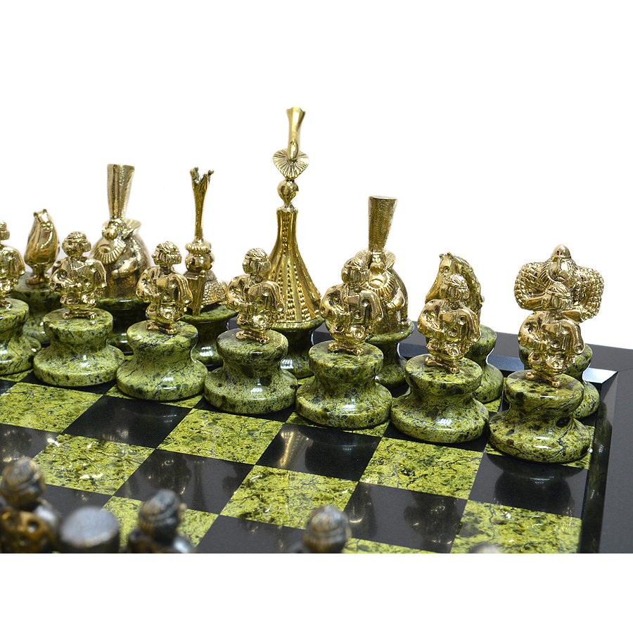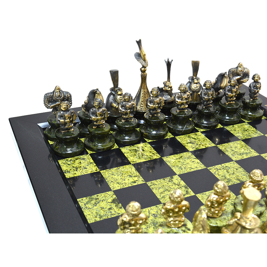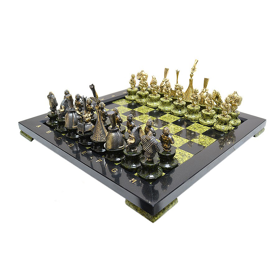 Материалы: змеевик, мрамор черный Карелия, бронза.