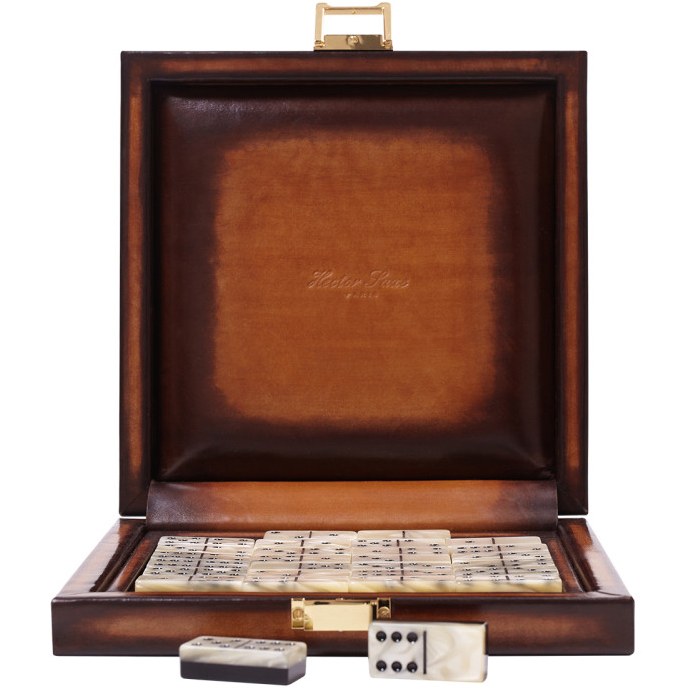 Эксклюзивный набор для игры в домино из кожи Alligator, коньячный
