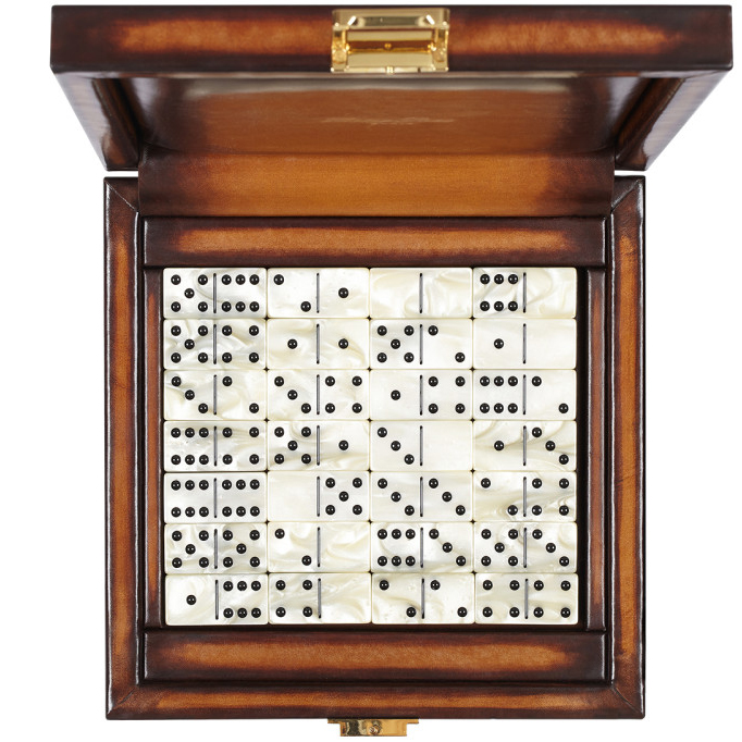 Комплектация:набор ацетатных двухцветных домино (Италия), футляр.