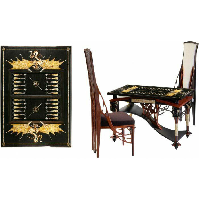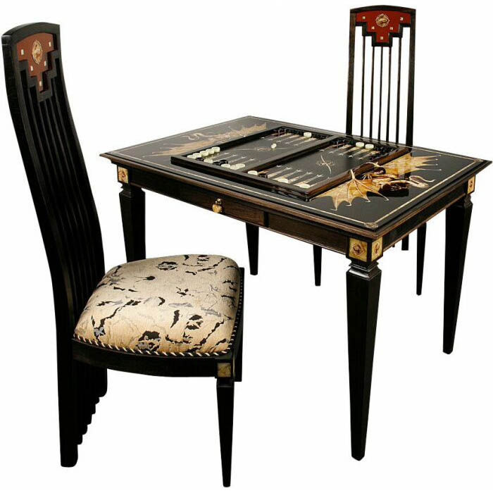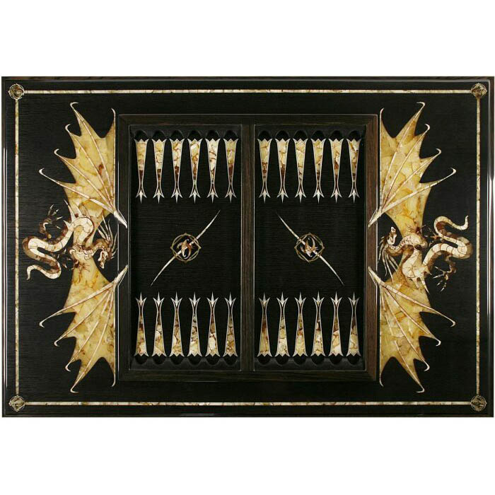 Гарнитур для игры в нарды "Дракон" с янтарной инкрустацией