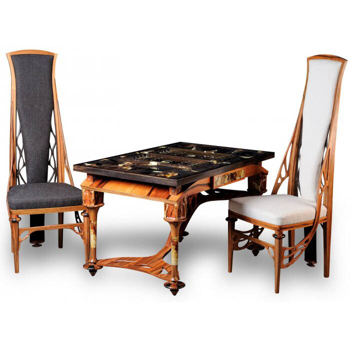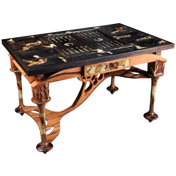 Гарнитур для игры в нарды "Лувр" с янтарной инкрустацией