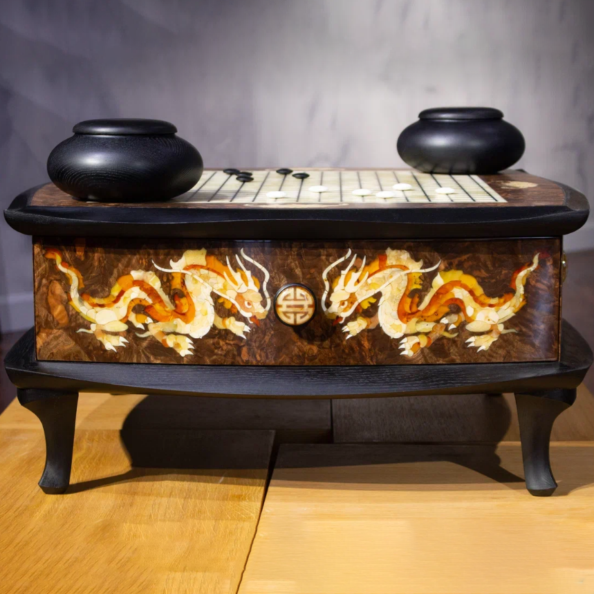 Позвольте представить вашему вниманию эксклюзивный набор для игры в го "Восточный дракон" — истинное воплощение элегантности и роскоши, созданное для ценителей традиционного восточного искусства и высококачественных игровых аксессуаров. Этот набор не просто удовлетворяет потребности в игре, но и является уникальным произведением искусства, способным украсить любой интерьер и стать гордостью вашего собрания.