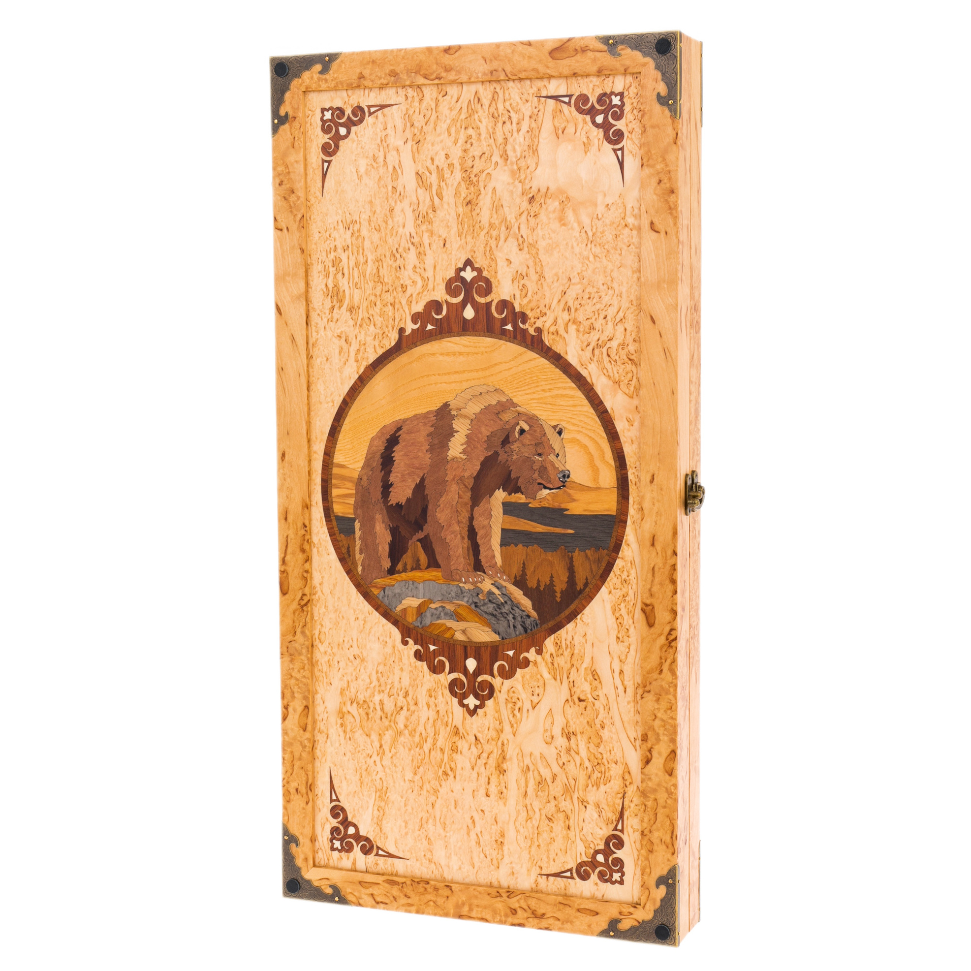 Нарды из мореного дуба и янтаря "Волк"Нарды из мореного дуба и янтаря "Волк"Нарды из мореного дуба выполнены вручную мастерами янтарно-краснодеревной мануфактуры. Изделие инкрустировано янтарем в уникальной технике Ковровской мозаики, фишки изготовлены из янтарного композита светлого и темного цвета..
