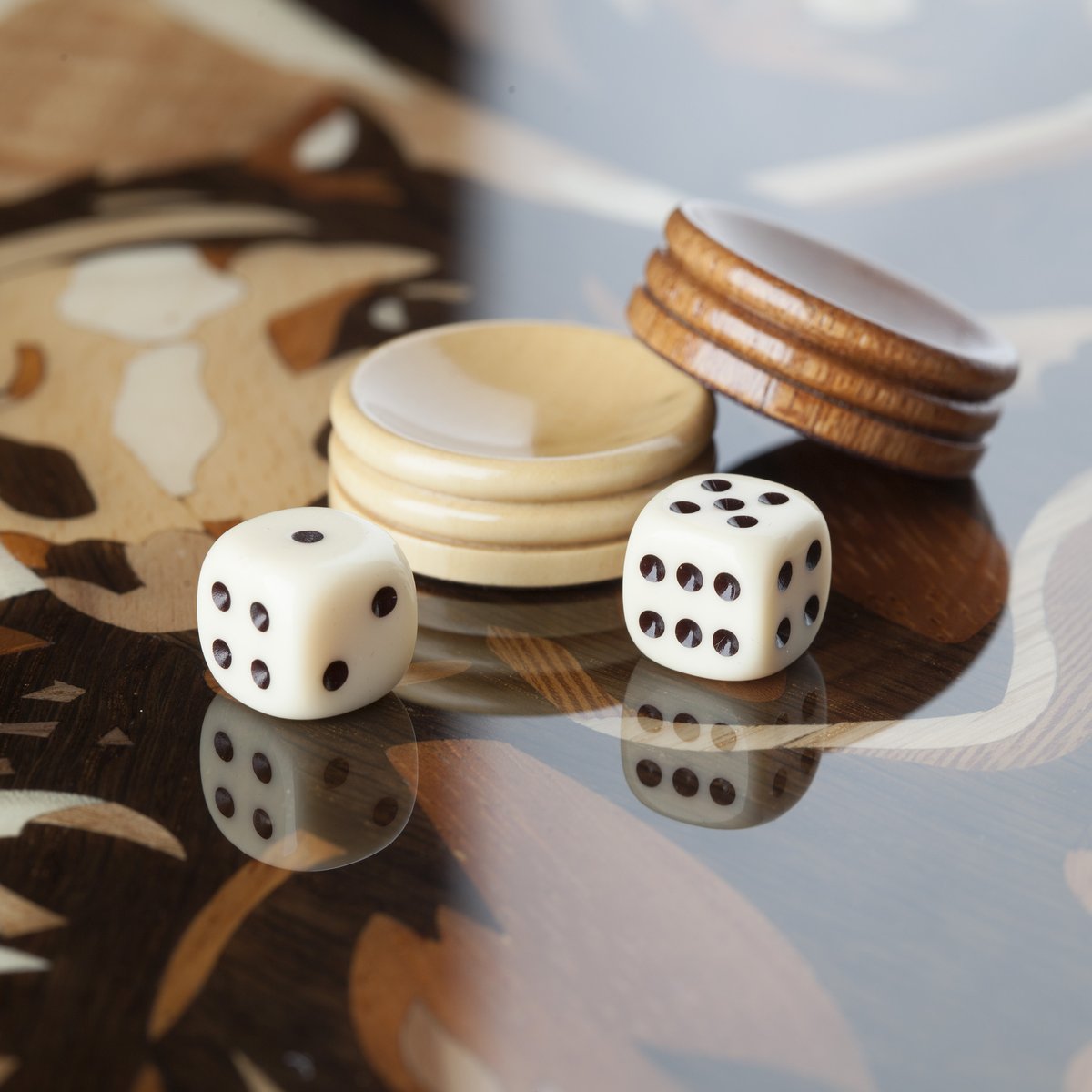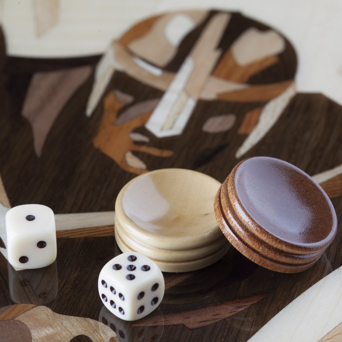 Шашки:светлые - колхидский самшит, темные - красное дерево, подклеены фетром. Диаметр 27 мм, 30 шт.
