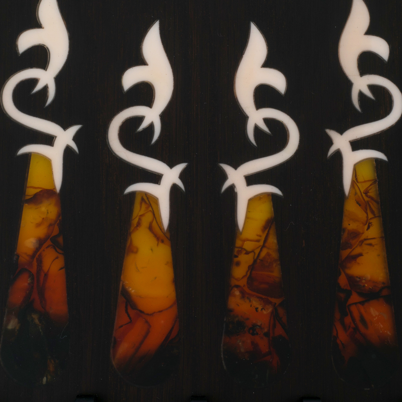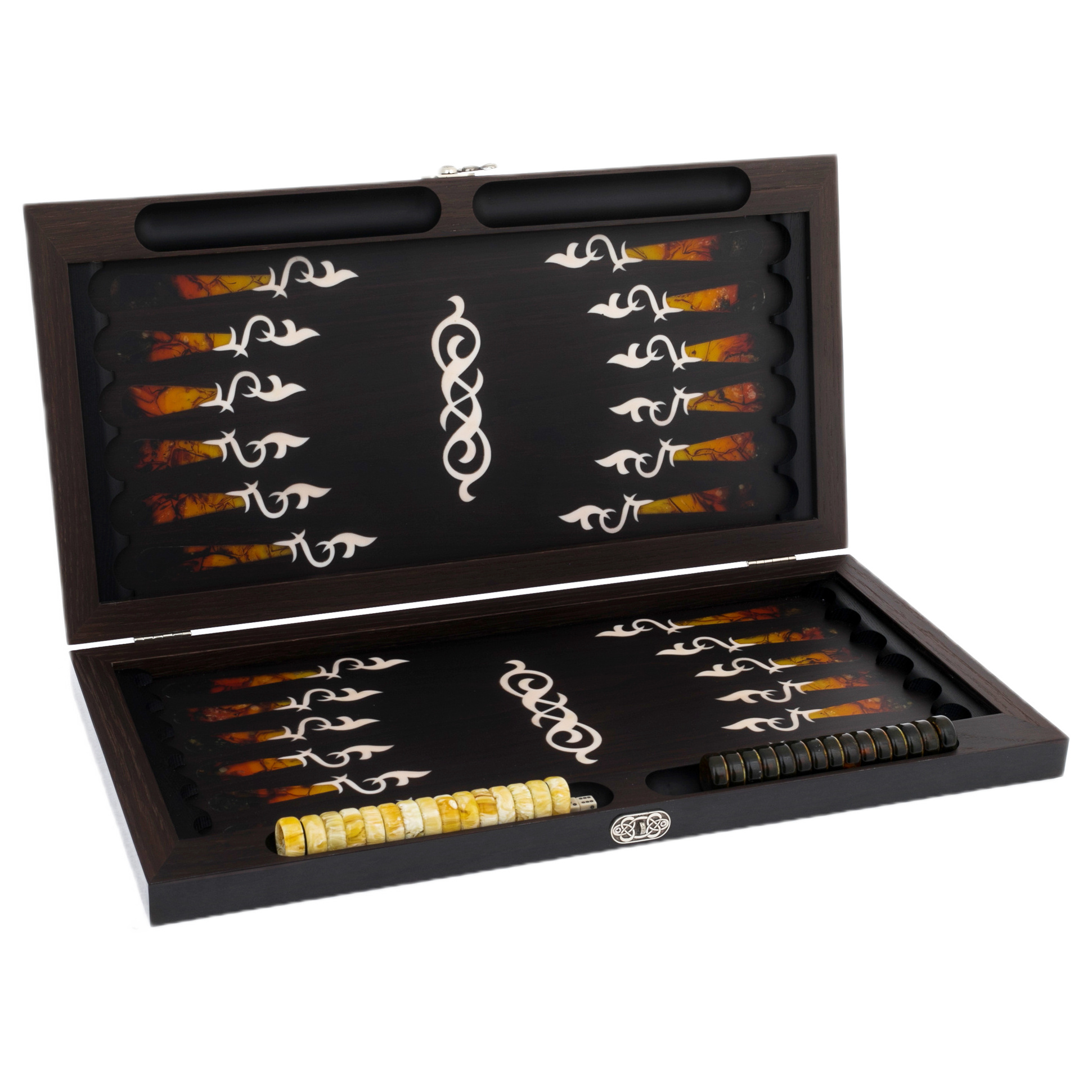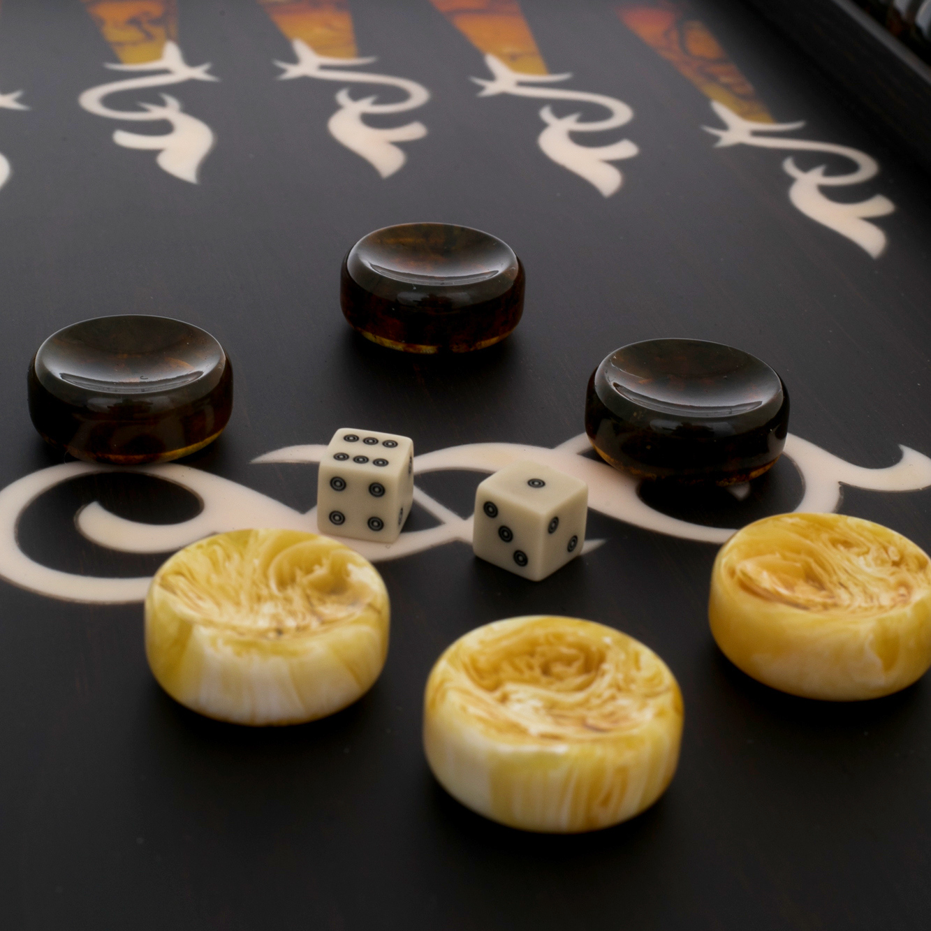 Янтарь здесь играет не только декоративную, но и символическую роль. Этот камень — окаменевшая древняя смола возрастом до 50 миллионов лет — ценится как носитель солнечной энергии и благополучия. В культурах Востока янтарь почитался за магические свойства, привлечение удачи и защиту от злых сил. Каждый фрагмент орнамента из янтаря уникален, имеет собственную текстуру, насыщенность и внутренний свет, который невозможно воспроизвести искусственно. Использование этого редкого материала превращает нарды в объект статуса, уважения к истории и тонкой привязанности к традициям.
