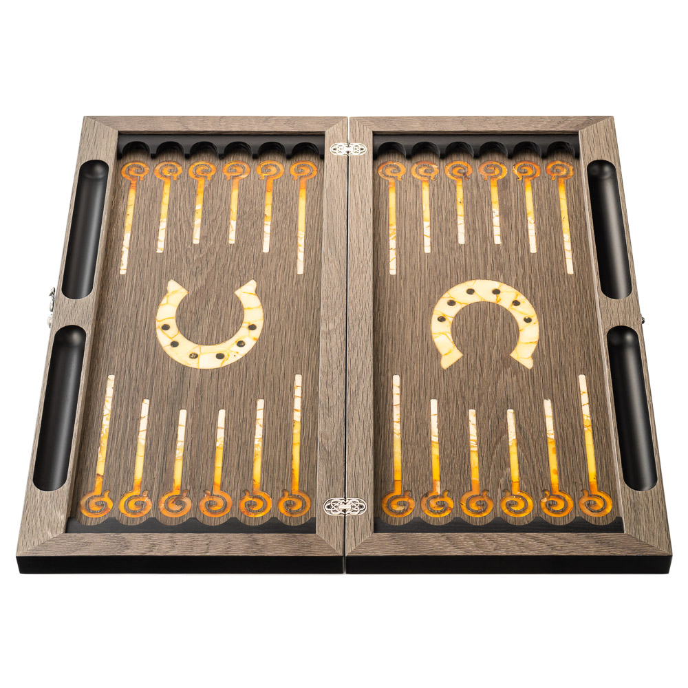Нарды из мореного дуба "Орнамент" коллекции "Ориент"Нарды из мореного дуба "Орнамент" коллекции "Ориент"Безупречное качество и эксклюзивный дизайн элитных нард не оставят равнодушным истинного ценителя добротных и красивых вещей! Эти нарды изготавливаются вручную из натурального янтаря в технике «Ковровская мозаика». Текстура материалов неповторима: невозможно изготовить двое совершенно одинаковых нард. Для изготовления игровой фурнитуры используется янтарный композит самых разных оттенков.
