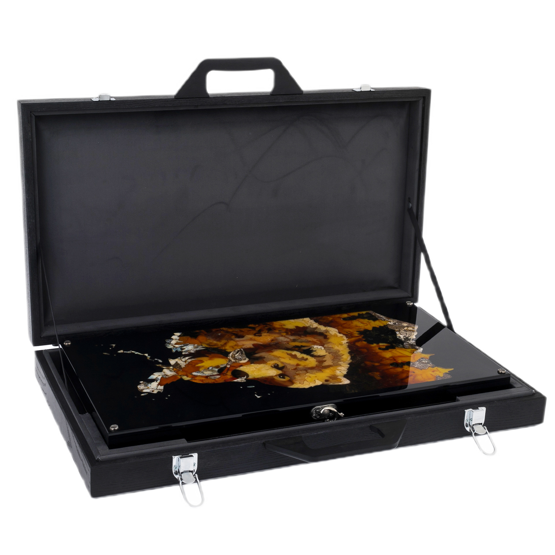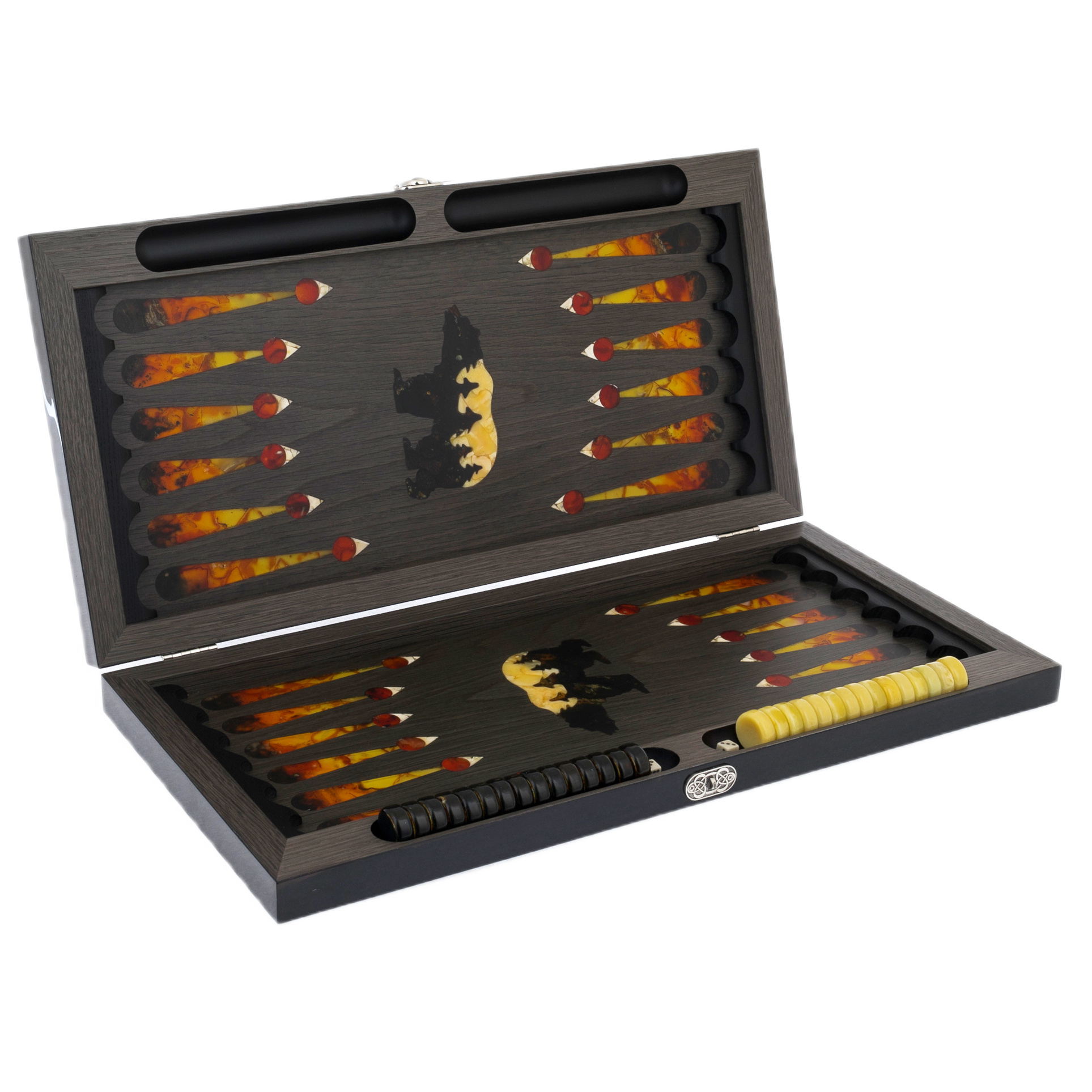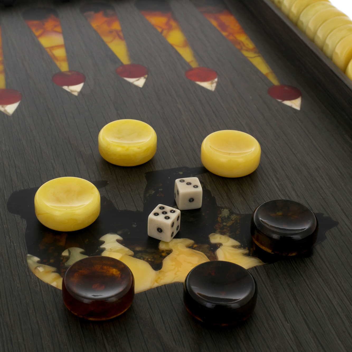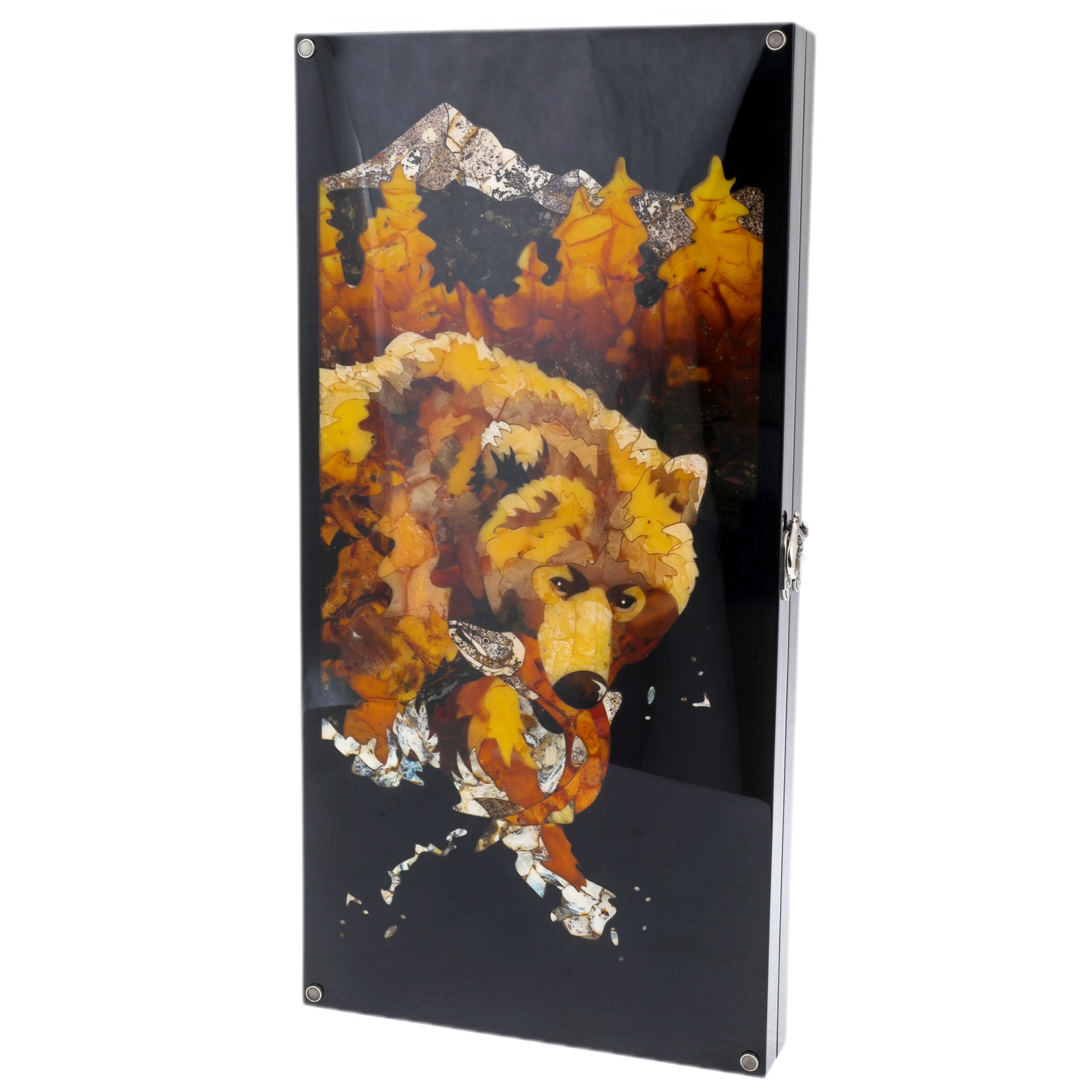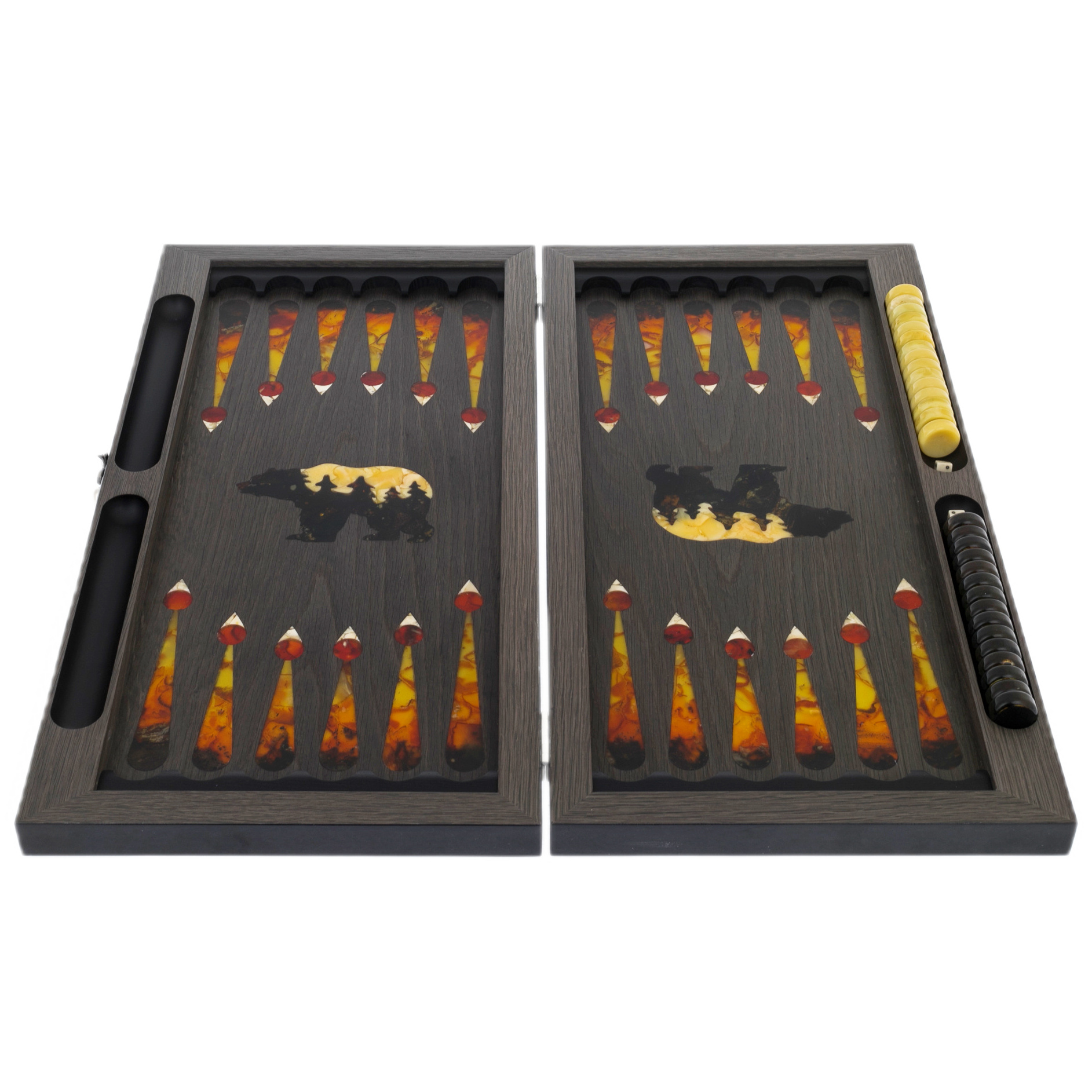 Нарды из ясеня и янтаря "Медведь на охоте"
