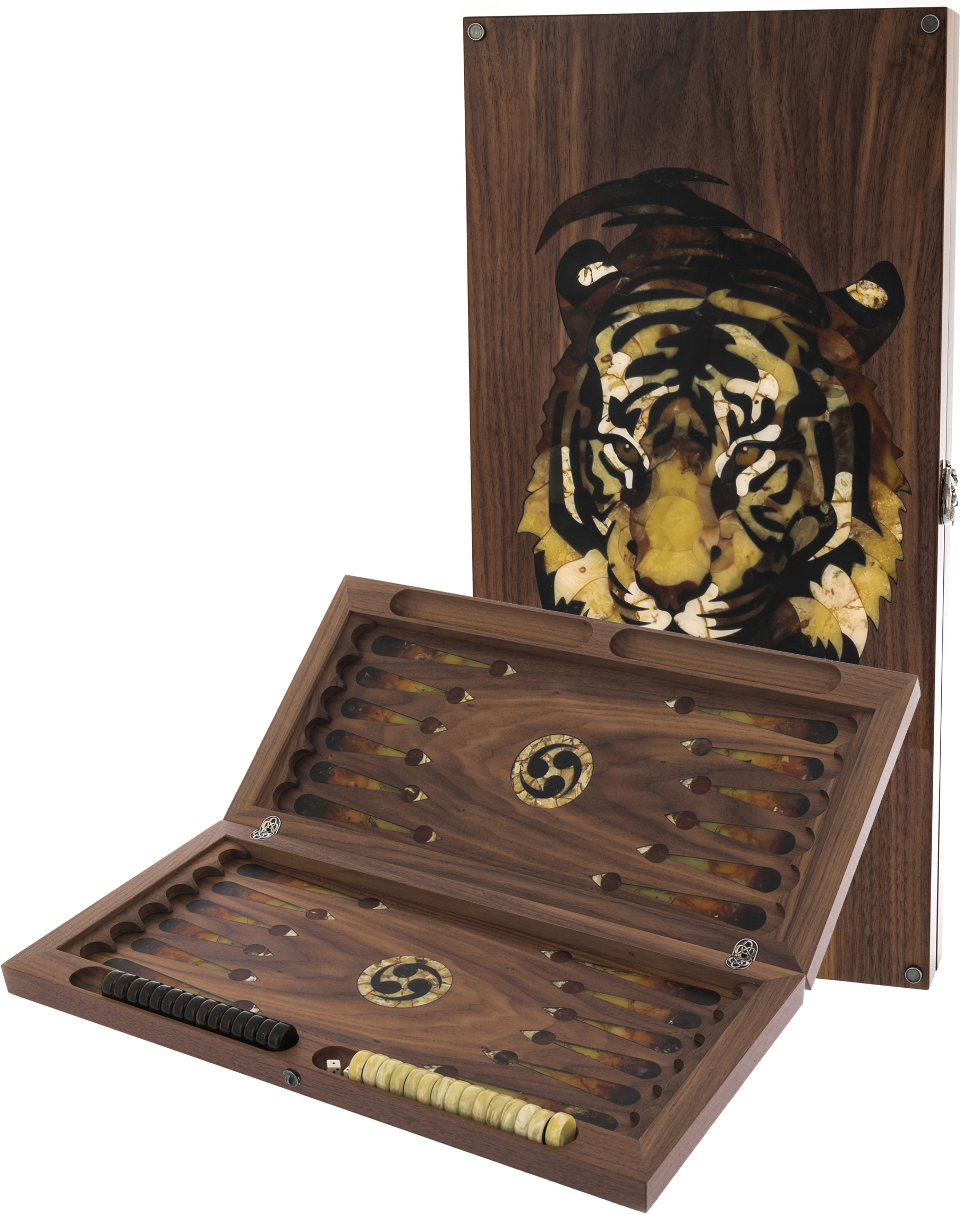 Нарды из ценных пород дерева и янтаря "Тигр"