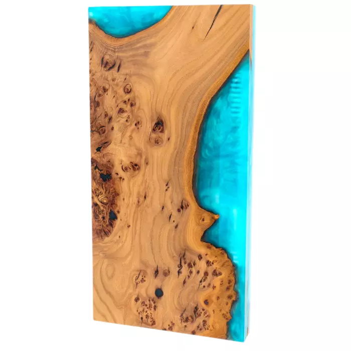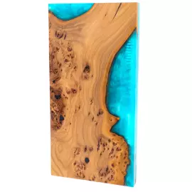 Нарды из дерева и эпоксидной смолы «Волны», голубые — выразительный предмет интерьера и полноценный игровой набор, выполненный в технике сочетания массива древесины и прозрачной смолы насыщенного бирюзового оттенка. В сложенном виде доска напоминает фрагмент побережья: тёплая текстура дерева с живым краем словно переходит в прозрачную глубину воды. Контраст медовых, карамельных прожилок и холодной голубой глади создаёт эффект движения и свежести.