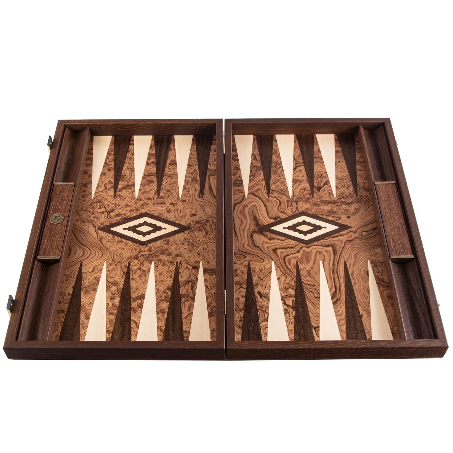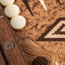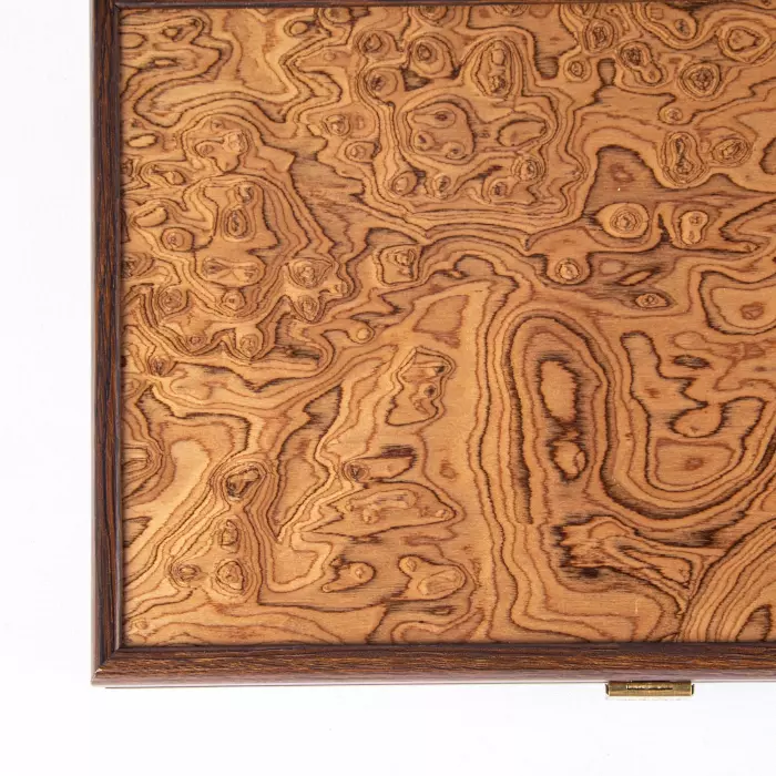 Нардовая доска «Жемчужина востока» выполнена из древесины "Огненное перо", которая обладает уникальной текстурой и относится эксклюзивным материалам для декоративной отделки высокохудожественных изделий.