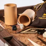 нарды, 30 перламутровых шашек, 4 кубика, 1 кубик для удвоения, комплект деревянных стаканчиков для игры в кости, подарочная коробка Manopoulos
