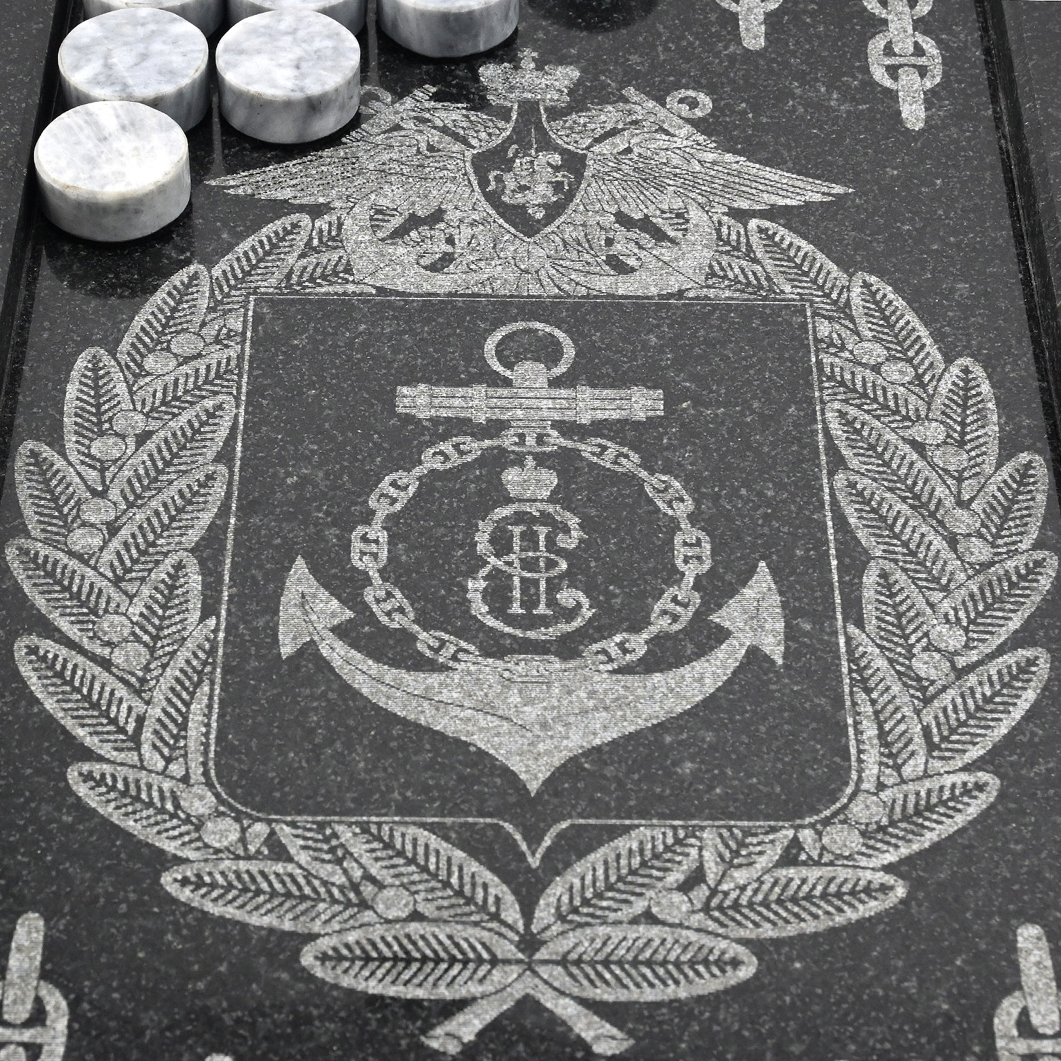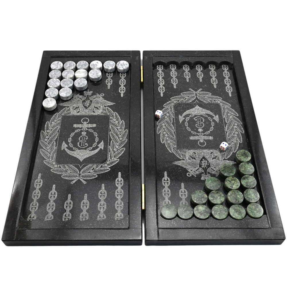 Нарды из гранита с гравировкой "Черноморский Флот"