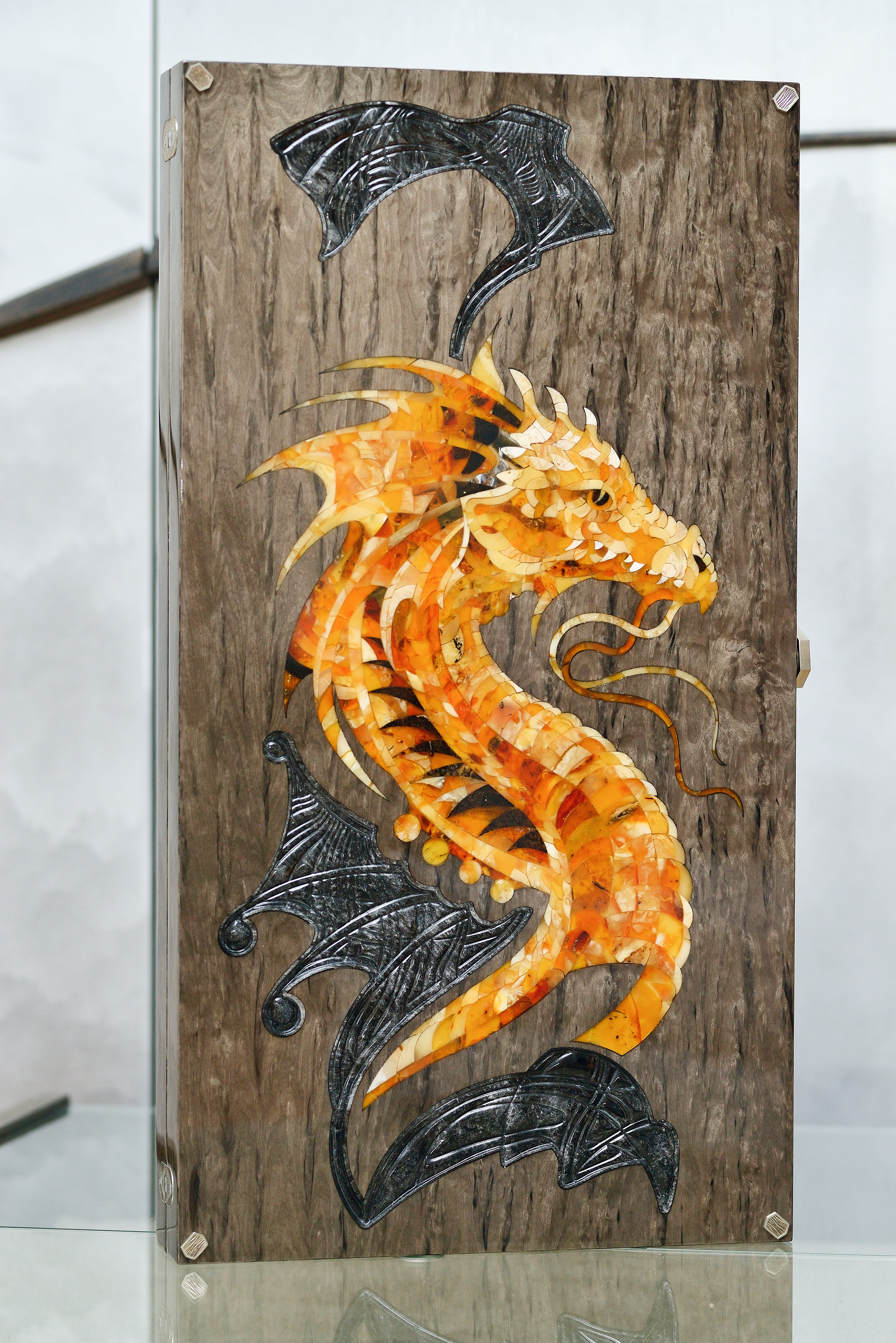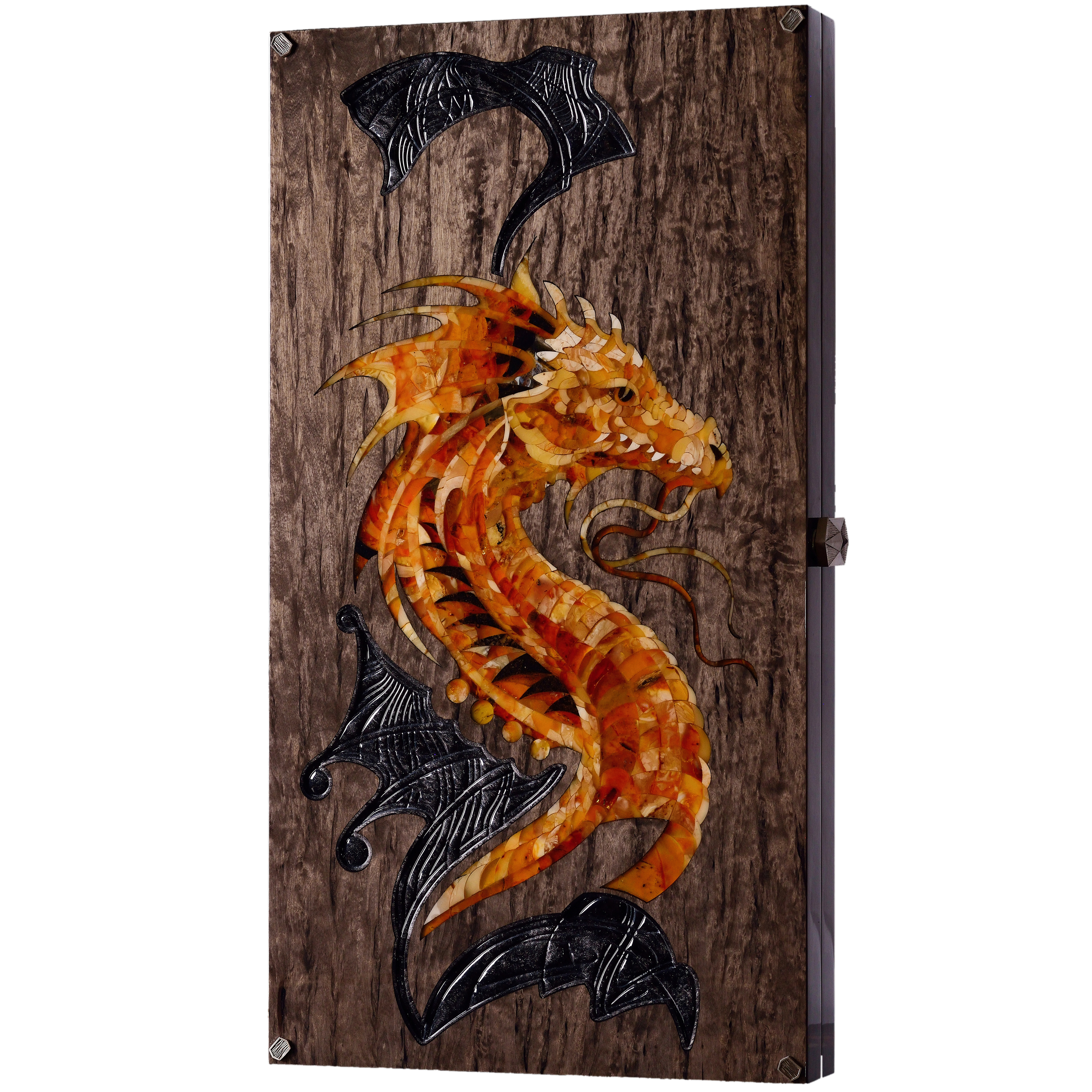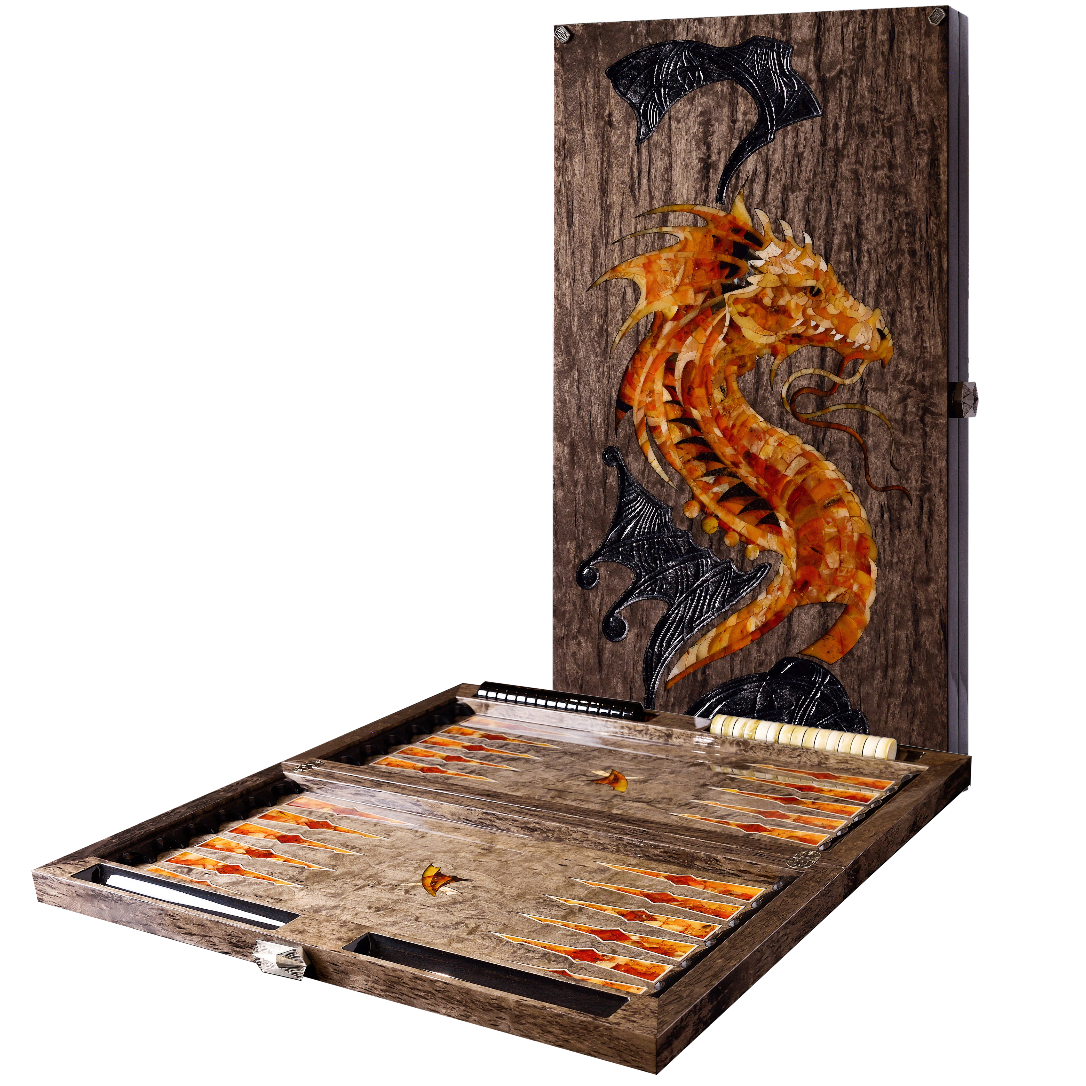 Нарды из карельской берёзы и янтаря "Дракон" коллекции "Легенды мира"