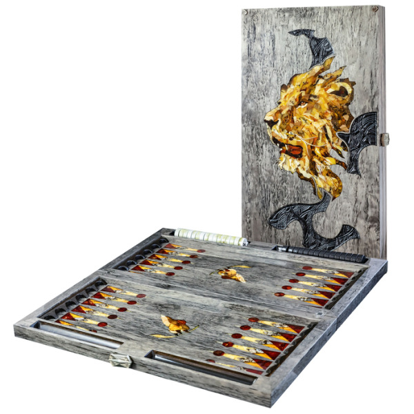 Нарды из мореного дуба и янтаря "Лев"Нарды из мореного дуба и янтаря "Лев"Безупречное качество и эксклюзивный дизайн элитных нард не оставят равнодушным истинного ценителя добротных и красивых вещей! Эти нарды изготавливаются вручную из натурального янтаря в технике «Ковровская мозаика». Текстура материалов неповторима: невозможно изготовить двое совершенно одинаковых нард. Для изготовления игровой фурнитуры используется янтарный композит самых разных оттенков.