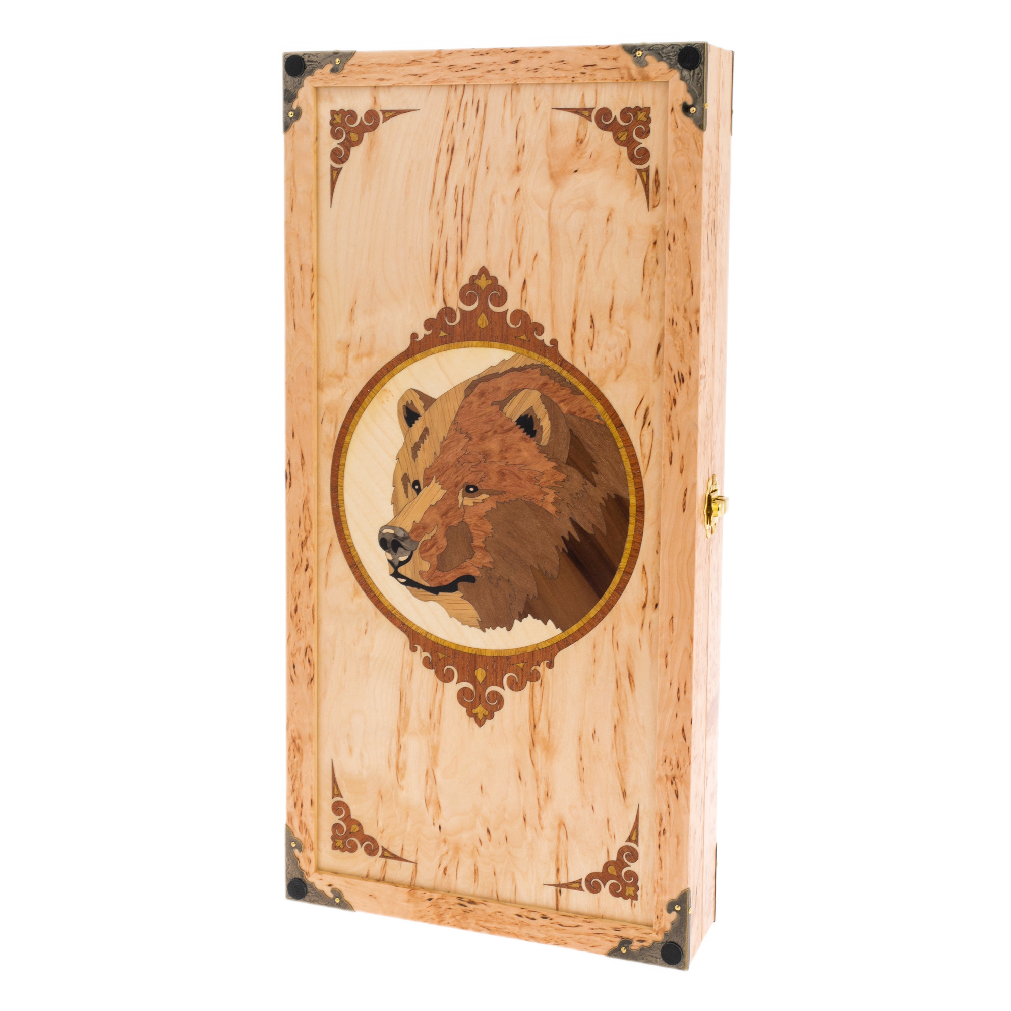 Нарды из карельской берёзы "Медведь" — не просто игра, а символ могущества, выдержки и непреклонной силы. Лесной хозяин, высеченный из благородного дерева, всматривается из глубины веков, напоминая, что победа принадлежит терпеливым и мудрым. Маркетри, воплощающий голову медведя, выполнен с филигранной точностью, подчёркивая естественную текстуру карельской берёзы, древесины, впитавшей холод северных ветров и тепло солнца.