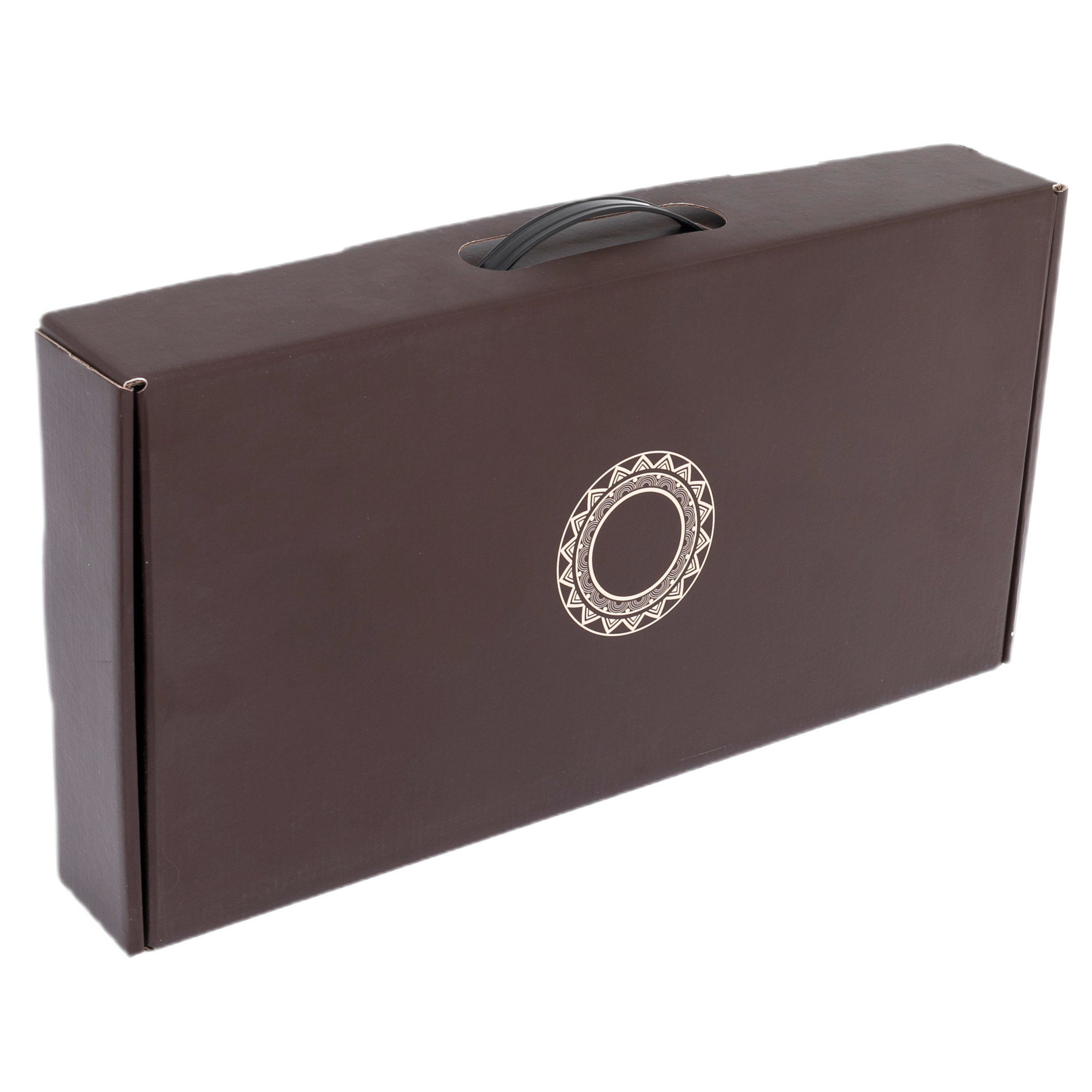 Массивная структура доски ощущается в руках как нечто основательное, неподвластное времени. Латунные петли и замок привносят в изделие нотки классической роскоши, подчёркивая его статусность. Внутренняя сторона коробки оформлена в лучших традициях ремесленного искусства, где каждый резной элемент — штрих к портрету истинного ценителя интеллектуальных развлечений.