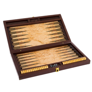 Нардовая доска «Жемчужина востока» выполнена из древесины "Огненное перо", которая обладает уникальной текстурой и относится эксклюзивным материалам для декоративной отделки высокохудожественных изделий.
