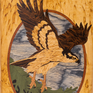На внешней стороне игровой доски — мозаичное панно из янтаря с изображением волка. Игровое поле выдержано в том же стиле и дополнено волчьими следами. Каждый камень янтарной мозаики подобран по цвету, размеру и рисунку и гармонично смотрится на темном фоне. Игра света в кусочках янтаря создает ощущение движения — кажется, что дикий зверь замер лишь на мгновение, но в любой момент готов к прыжку. Благодаря потрясающей реалистичности мозаика напоминает картину, написанную с натуры.