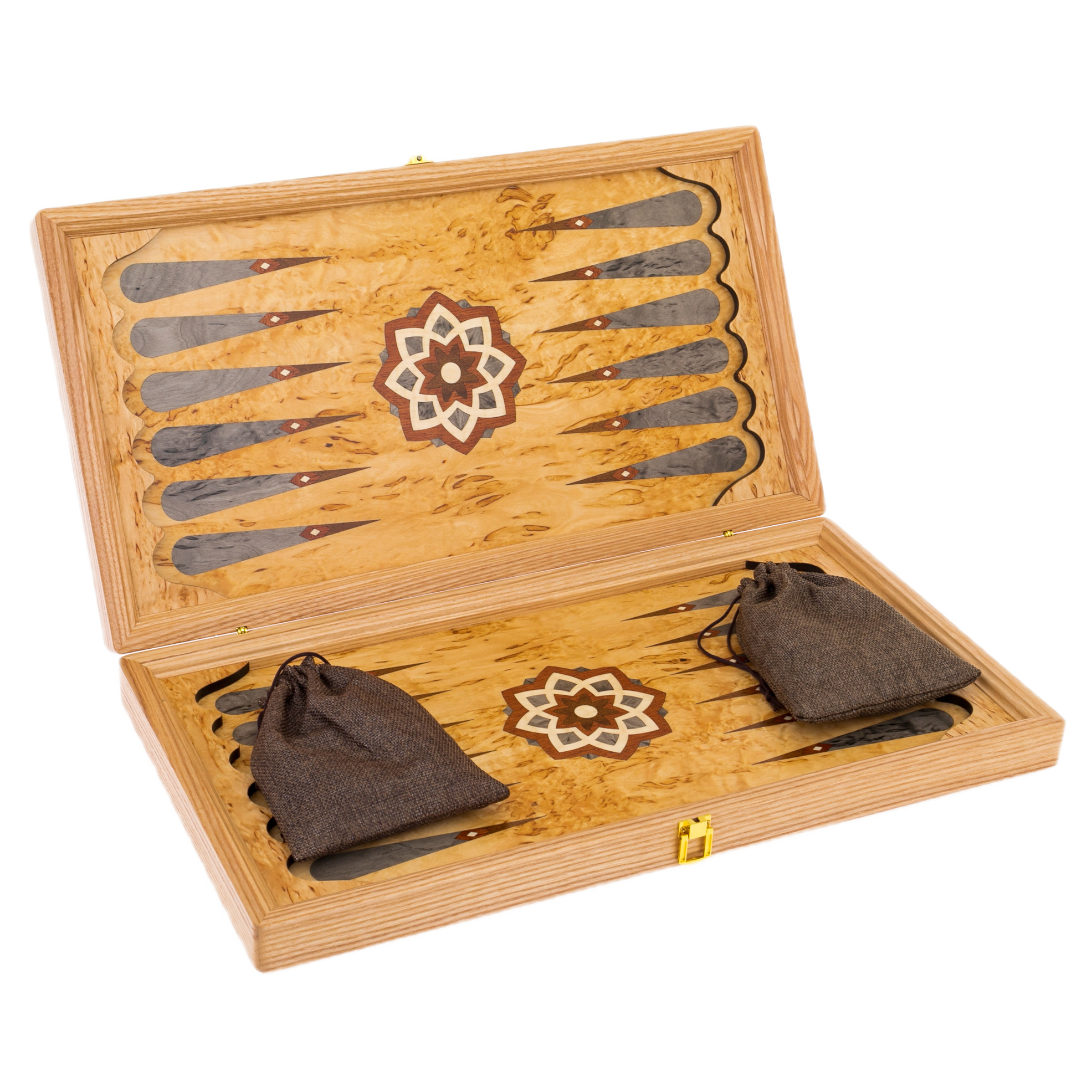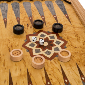 Нардовая доска «Жемчужина востока» выполнена из древесины "Огненное перо", которая обладает уникальной текстурой и относится эксклюзивным материалам для декоративной отделки высокохудожественных изделий.