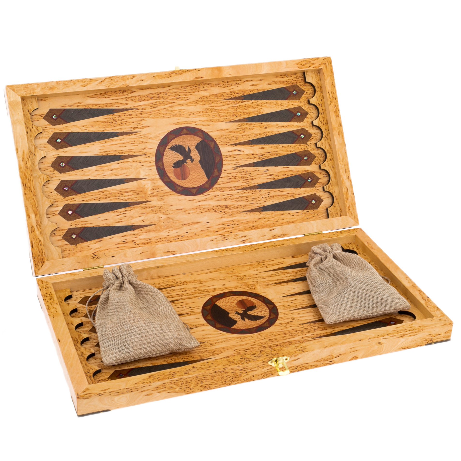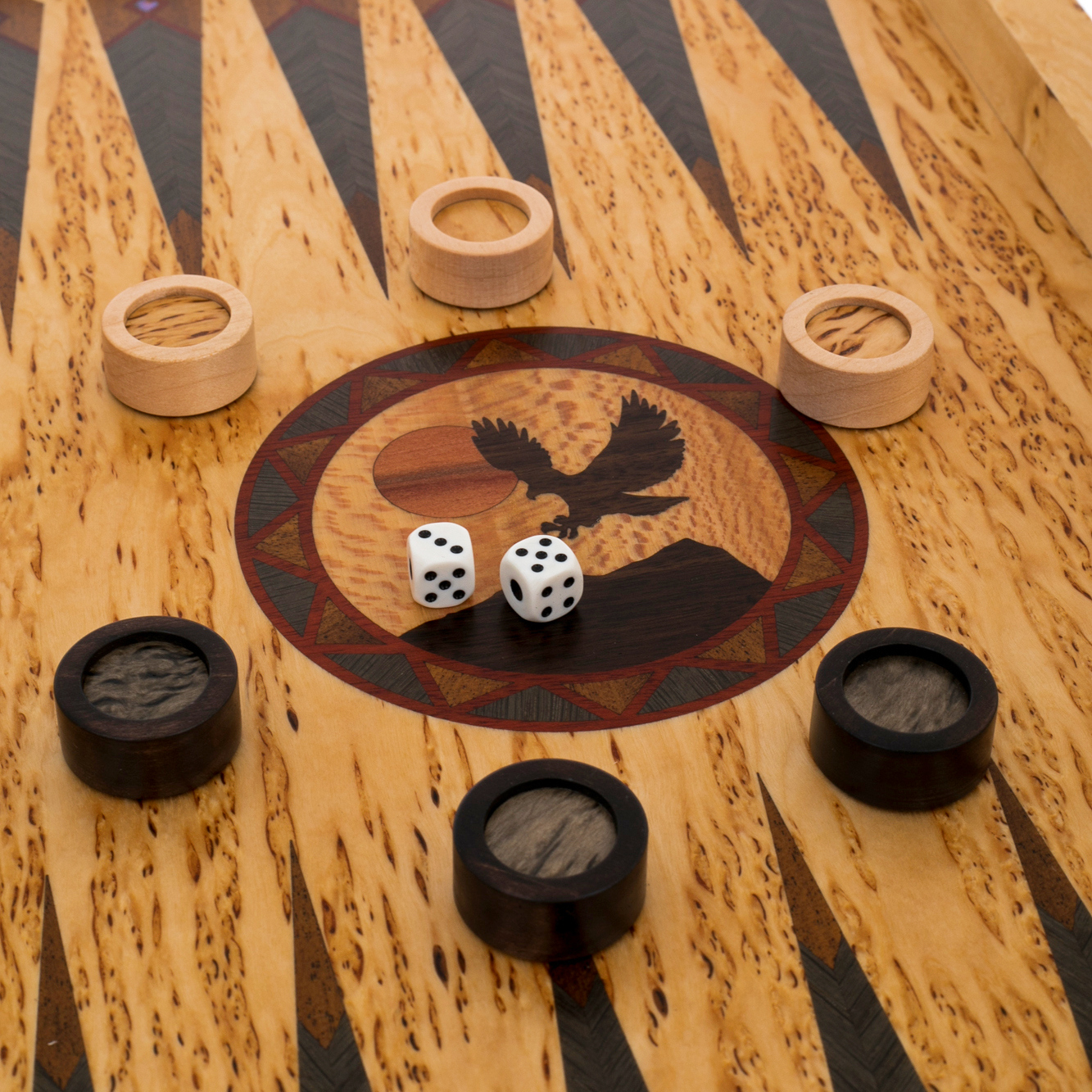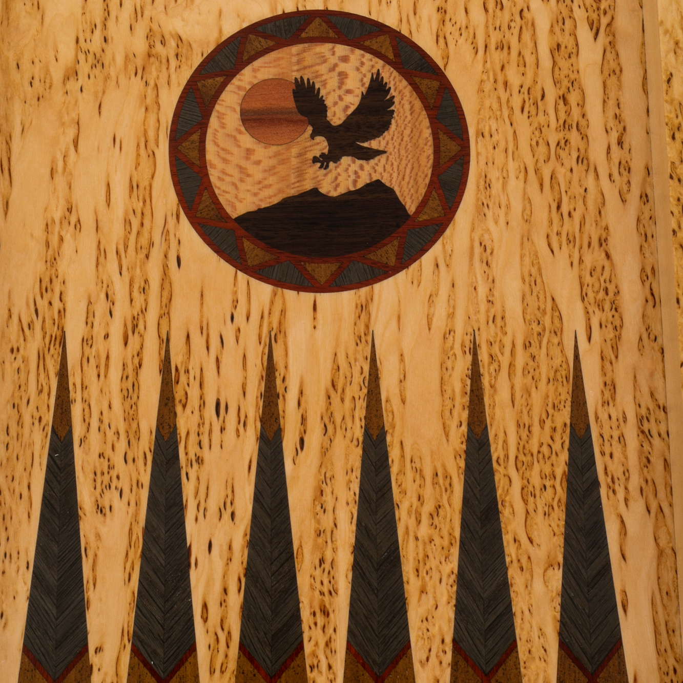 Нардовая доска «Жемчужина востока» выполнена из древесины "Огненное перо", которая обладает уникальной текстурой и относится эксклюзивным материалам для декоративной отделки высокохудожественных изделий.