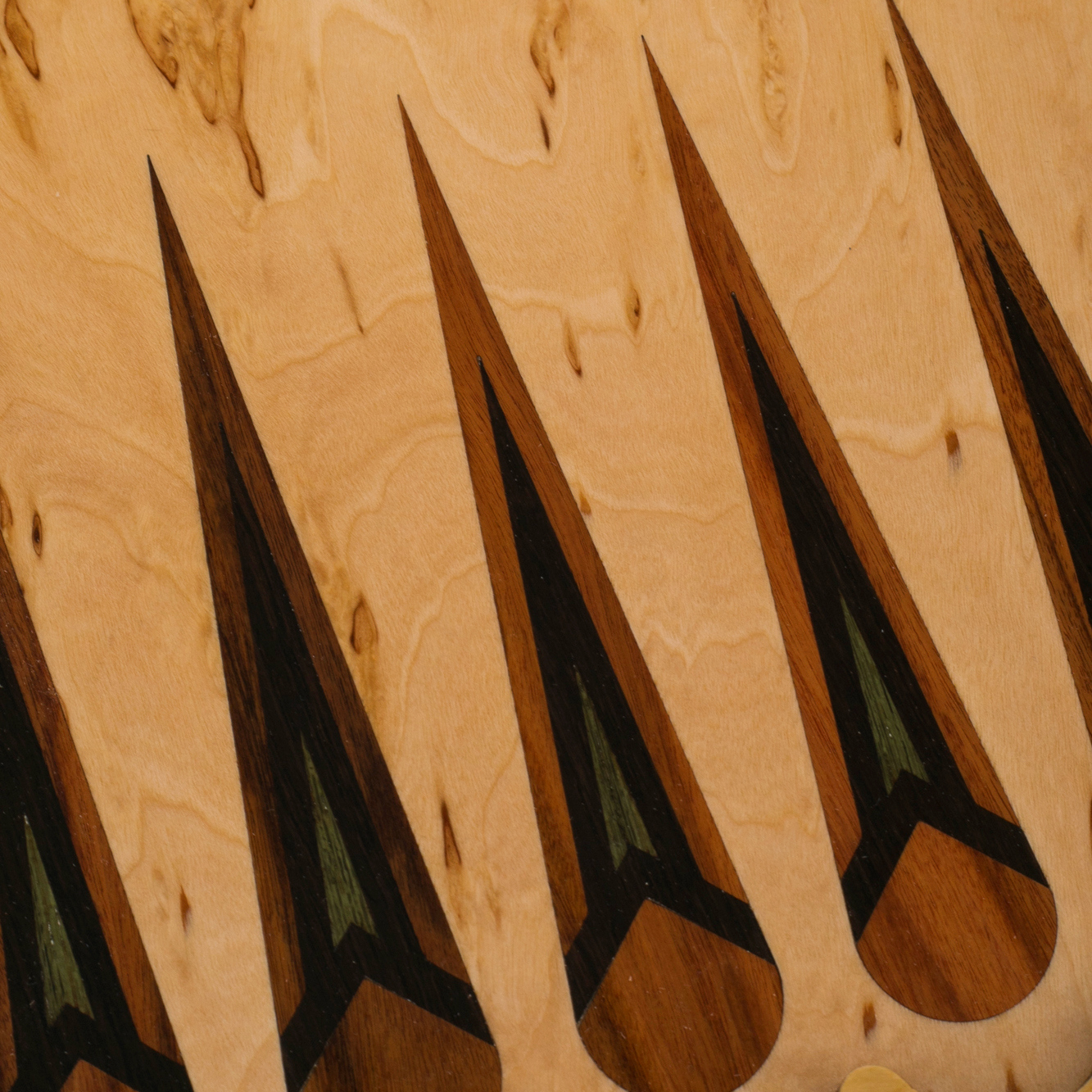 Игровое поле внутри выполнено с той же тщательностью — поверхность полирована до зеркального блеска. Всё в этой работе дышит природной гармонией и уверенностью мастера, для которого древесина — живой материал, открывающий характер будущего владельца.