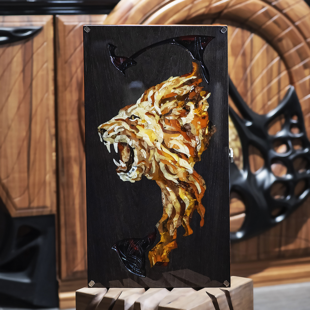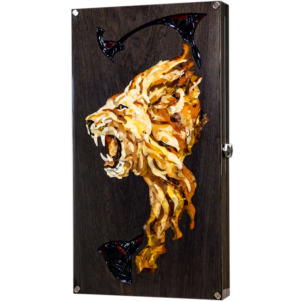 Нарды из мореного дуба и янтаря "Царь зверей" коллекции "Легенды мира"