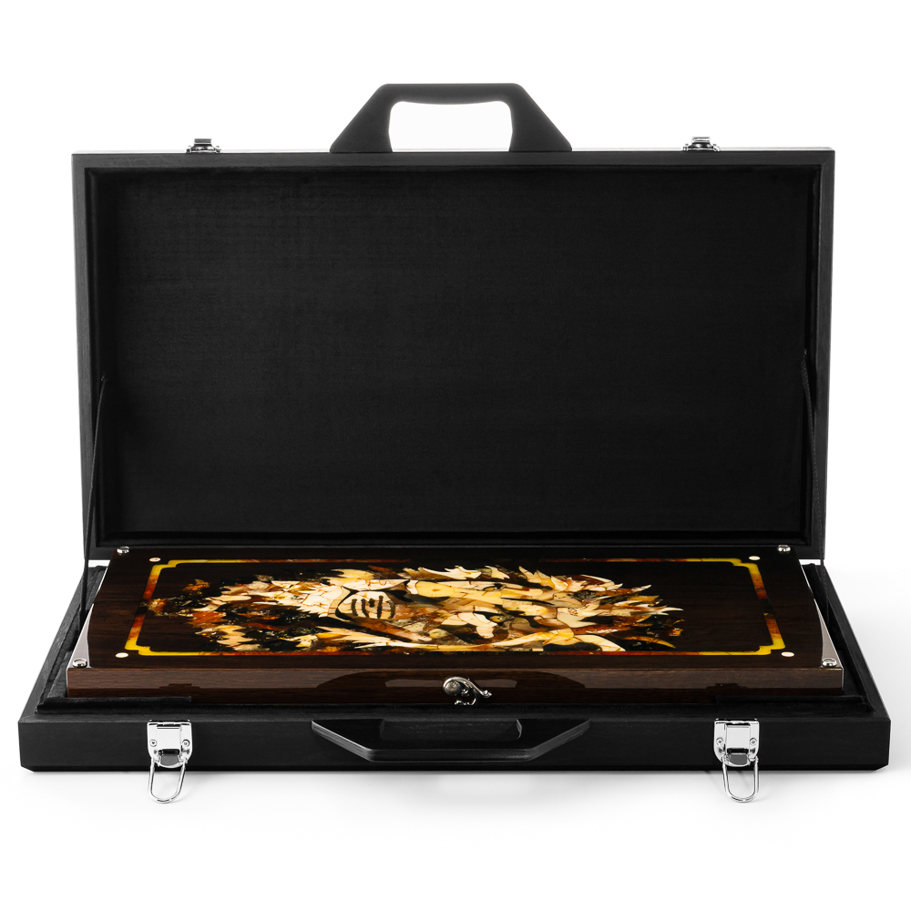 Нарды из мореного дуба и янтаря "Царь зверей"