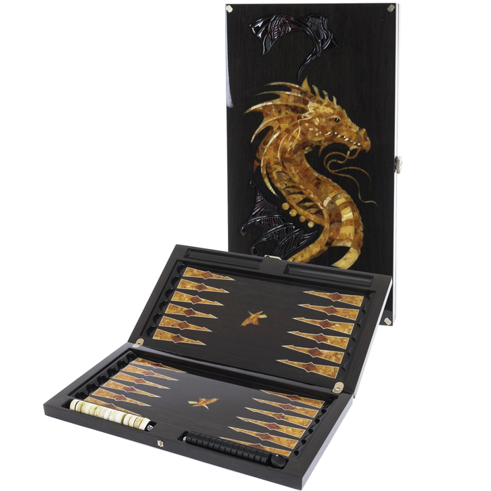 Нарды из мореного дуба и янтаря "Дракон" коллекции "Легенды мира"
