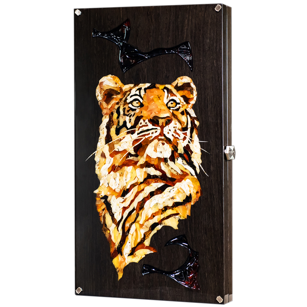 Нарды из мореного дуба и янтаря "Тигр" коллекции "Легенды мира"