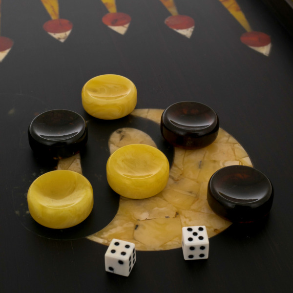 Нарды из янтаря "Орнамент" коллекции "Ориент"Нарды из янтаря "Орнамент" коллекции "Ориент"Безупречное качество и эксклюзивный дизайн элитных нард не оставят равнодушным истинного ценителя добротных и красивых вещей! Эти нарды изготавливаются вручную из натурального янтаря в технике «Ковровская мозаика». Текстура материалов неповторима: невозможно изготовить двое совершенно одинаковых нард. Для изготовления игровой фурнитуры используется янтарный композит самых разных оттенков.