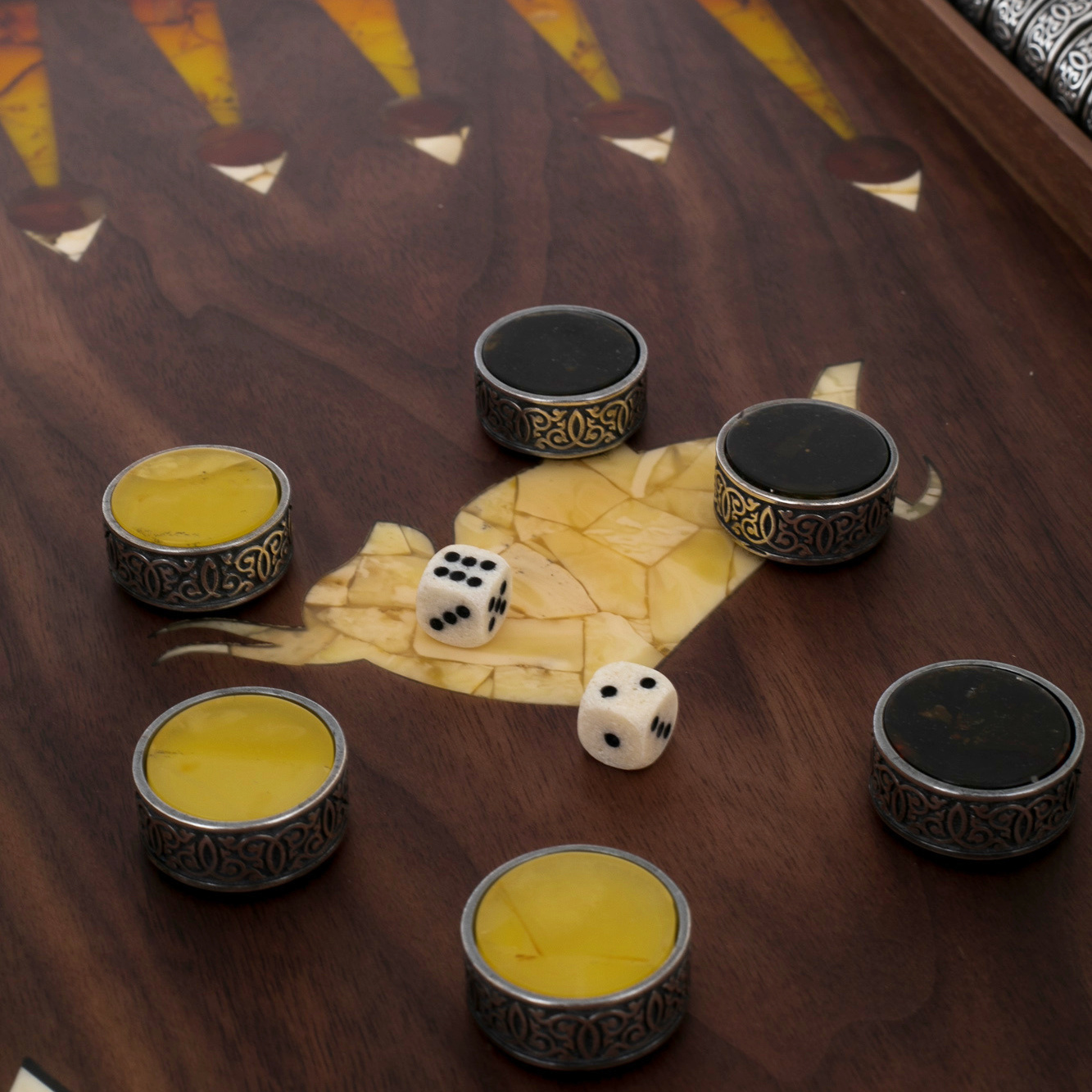 Нарды из ореха и янтаря "Бык"