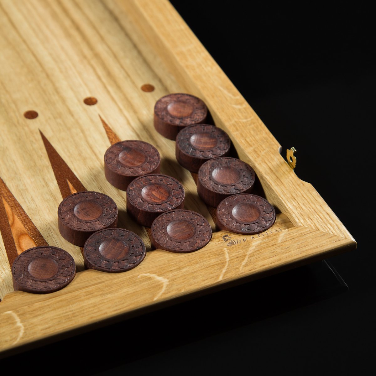 Шашки:светлые - бук, темные - бук тонированный, подклеены тканью. Диаметр 30 мм, 30 шт.