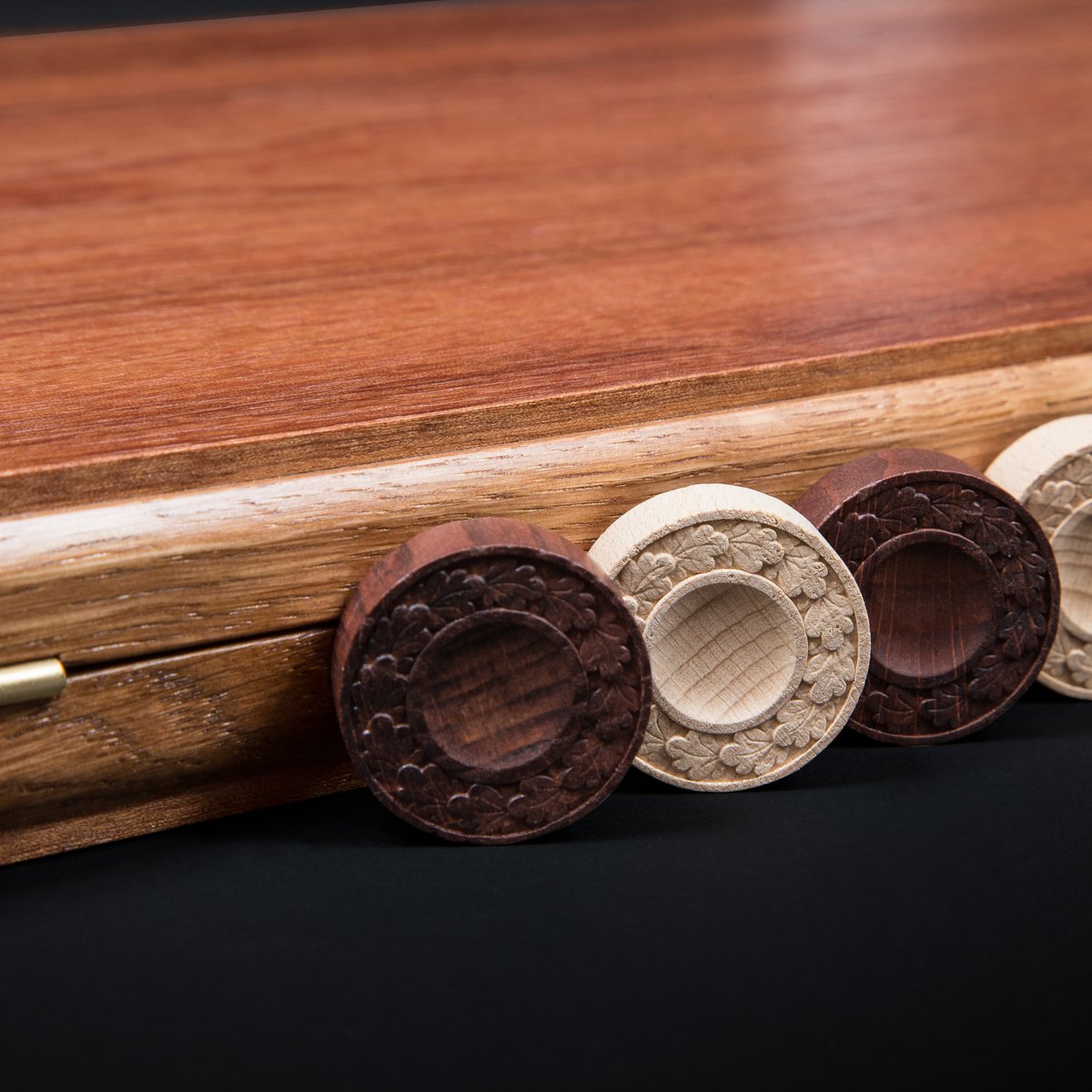 Шашки:светлые - бук, темные - бук тонированный, подклеены тканью. Диаметр 30 мм, 30 шт.