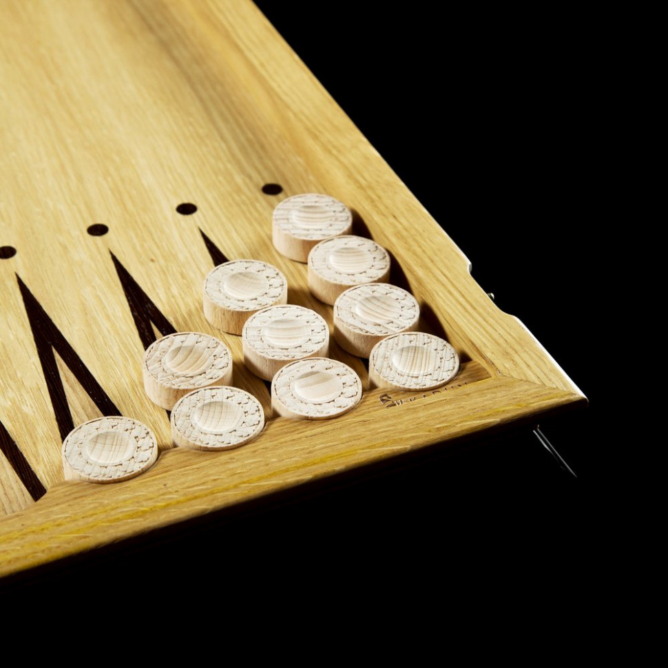 Шашки:светлые - бук, темные - бук тонированный, подклеены тканью. Диаметр 30 мм, 30 шт.