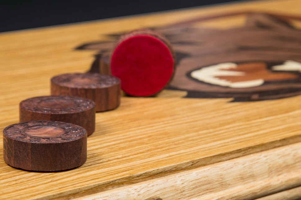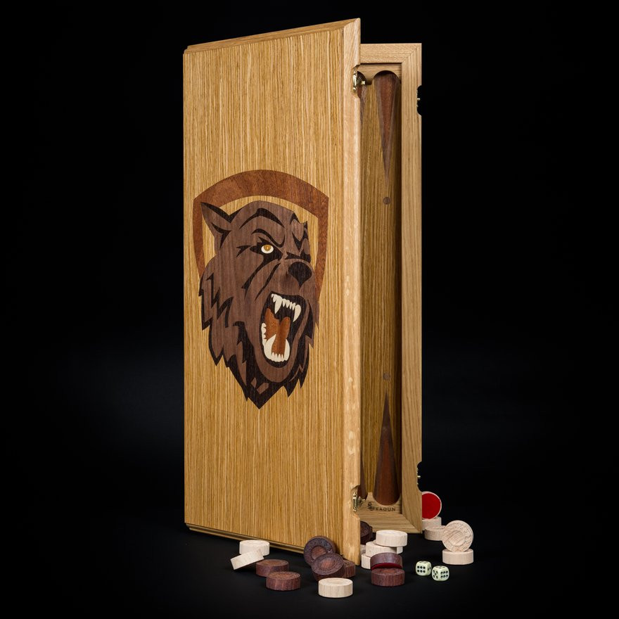 Нарды из полевого дуба "Волк" светлый корпус