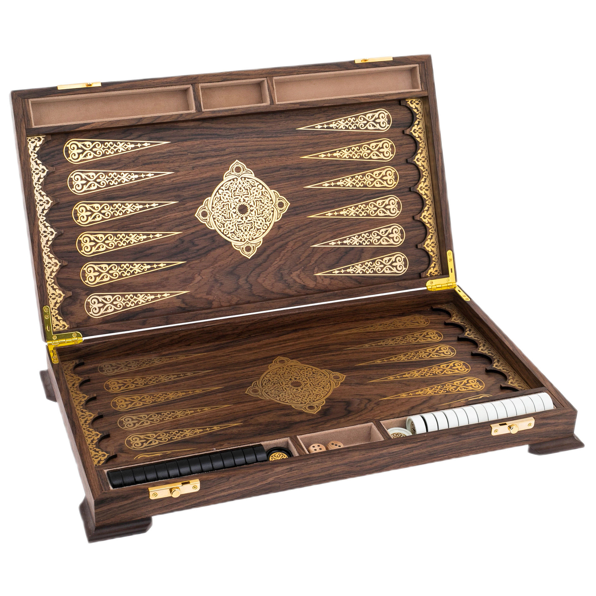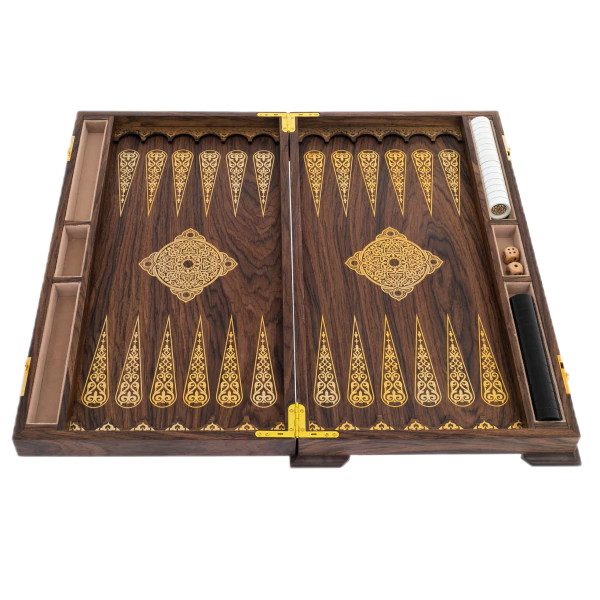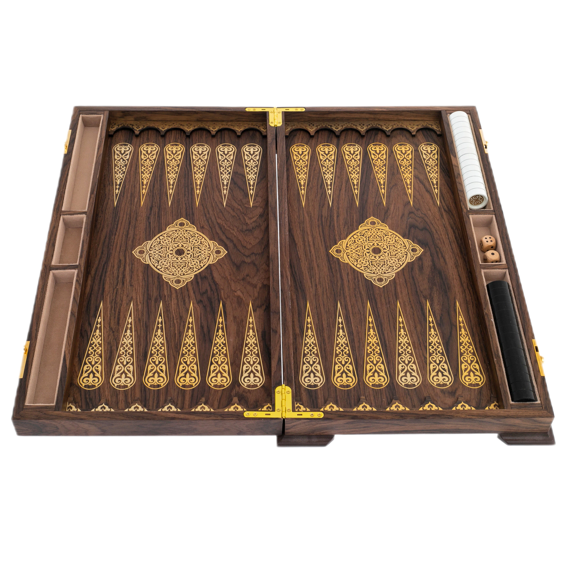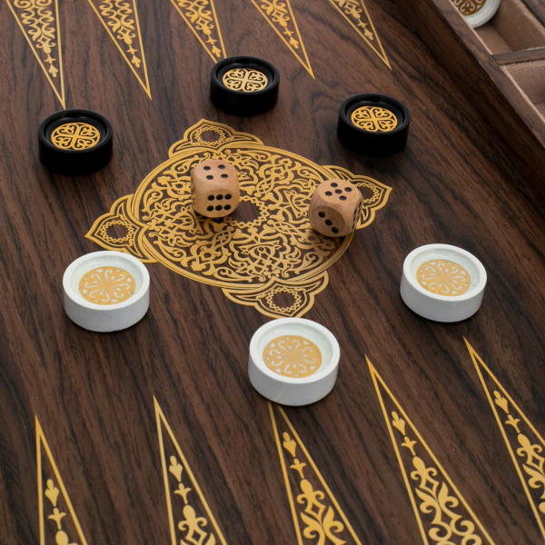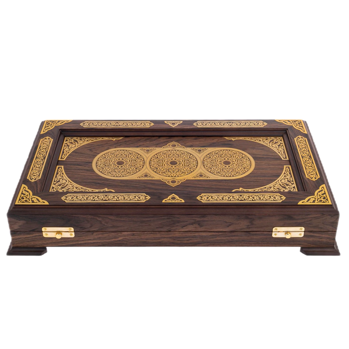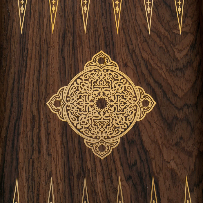 Нарды «Восточный узор» — классический игровой комплект, выполненный из благородной древесины с выразительной текстурой и украшенный сложным орнаментом в традициях восточной декоративной культуры. Корпус представляет собой массивную шкатулку на устойчивых ножках с аккуратной фурнитурой, внутри которой скрыто игровое поле с тщательно выверенной геометрией. Поверхности декорированы изящными узорами с золотистыми акцентами, создающими ощущение глубины и ритма. В комплект входят фишки и кости, гармонично вписанные в общий стиль изделия.