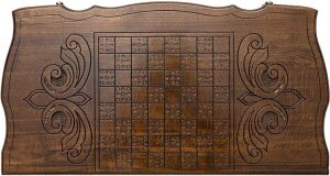 Эти нарды изготавливаются вручную. Великолепная резьба в полном объеме с внешней лицевой стороны выполнена в лучших традициях русских мастеров.