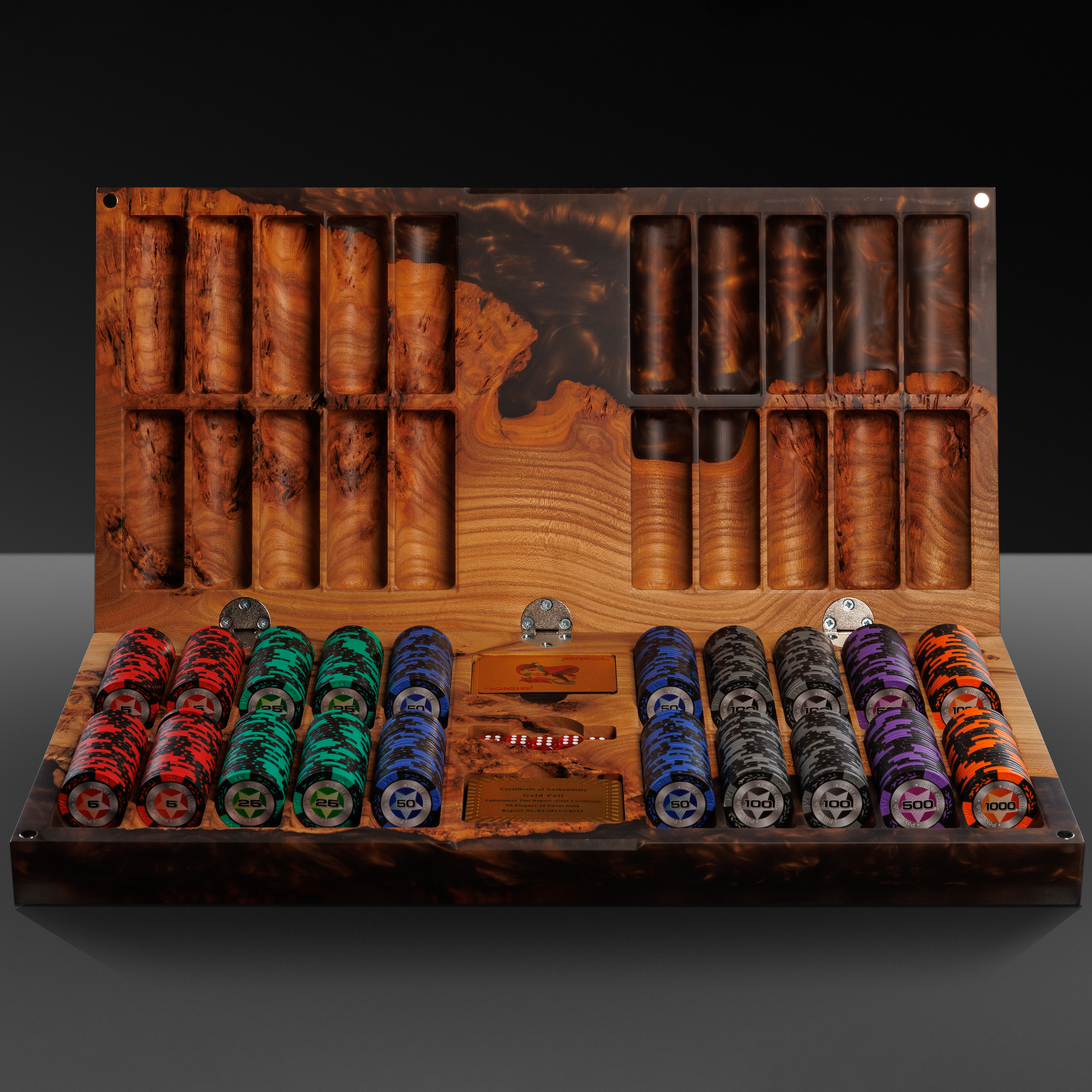 Покерный набор из дерева карагач и коричневой эпоксидной смолы