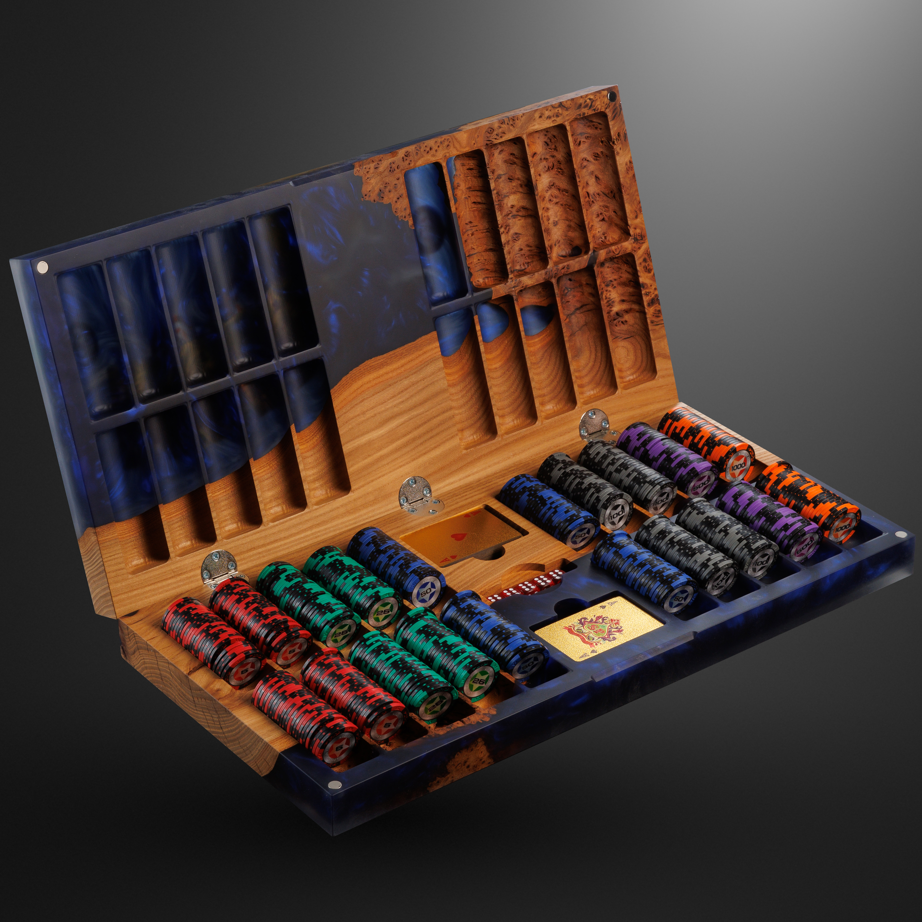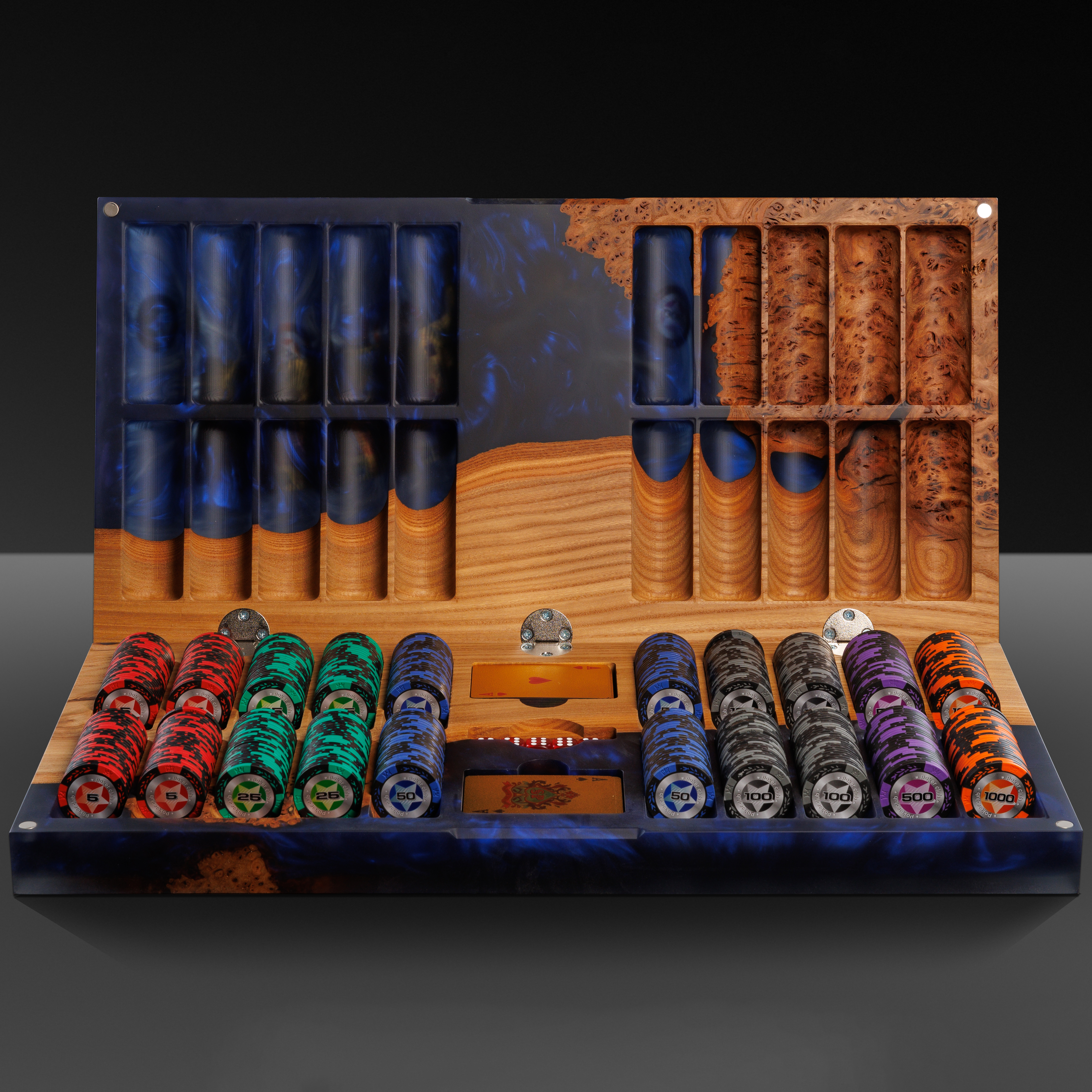 Покерный набор из дерева карагач и синей эпоксидной смолы